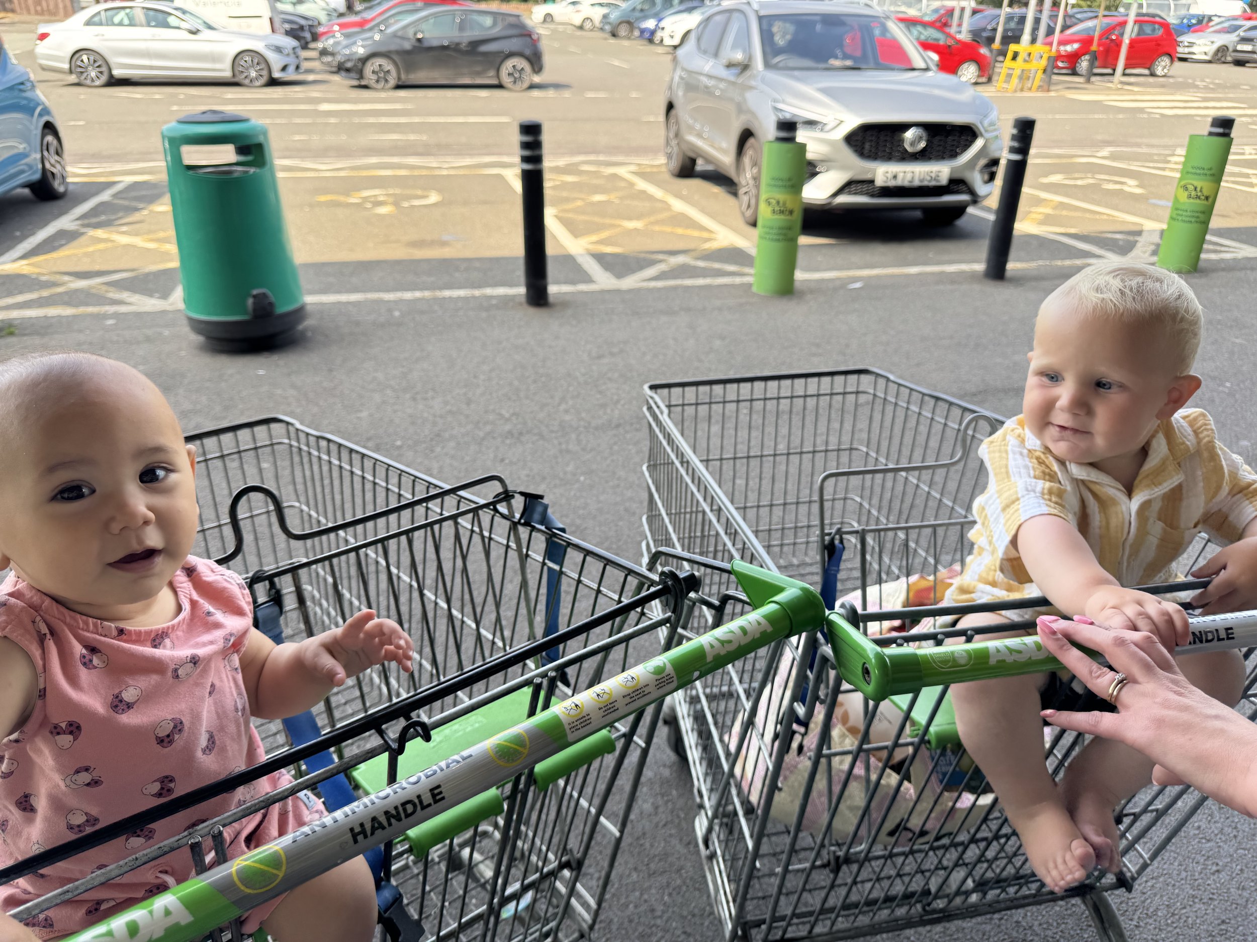 • 購物清單卡(上面有 4–8 個物品圖案)