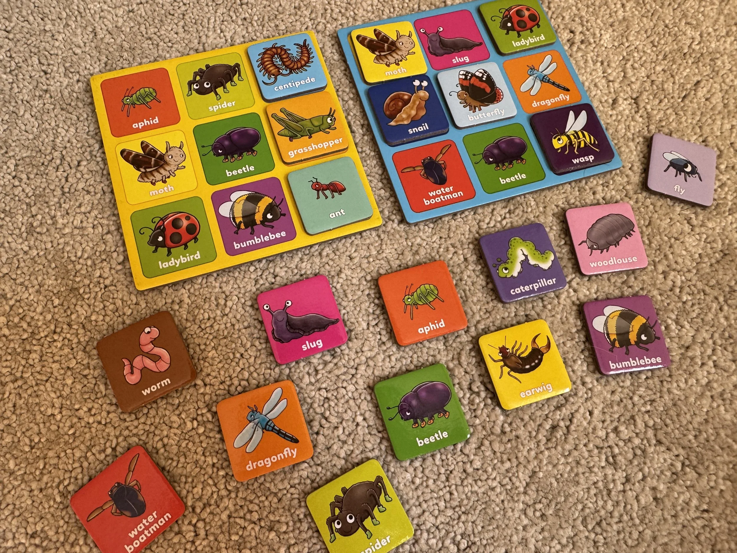 • 每位玩家一張個人 Bingo 棋板(含各種動物/昆蟲圖像)