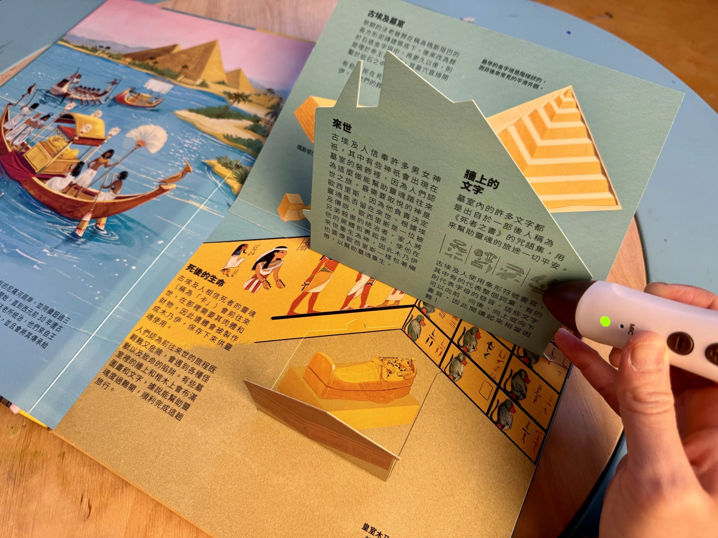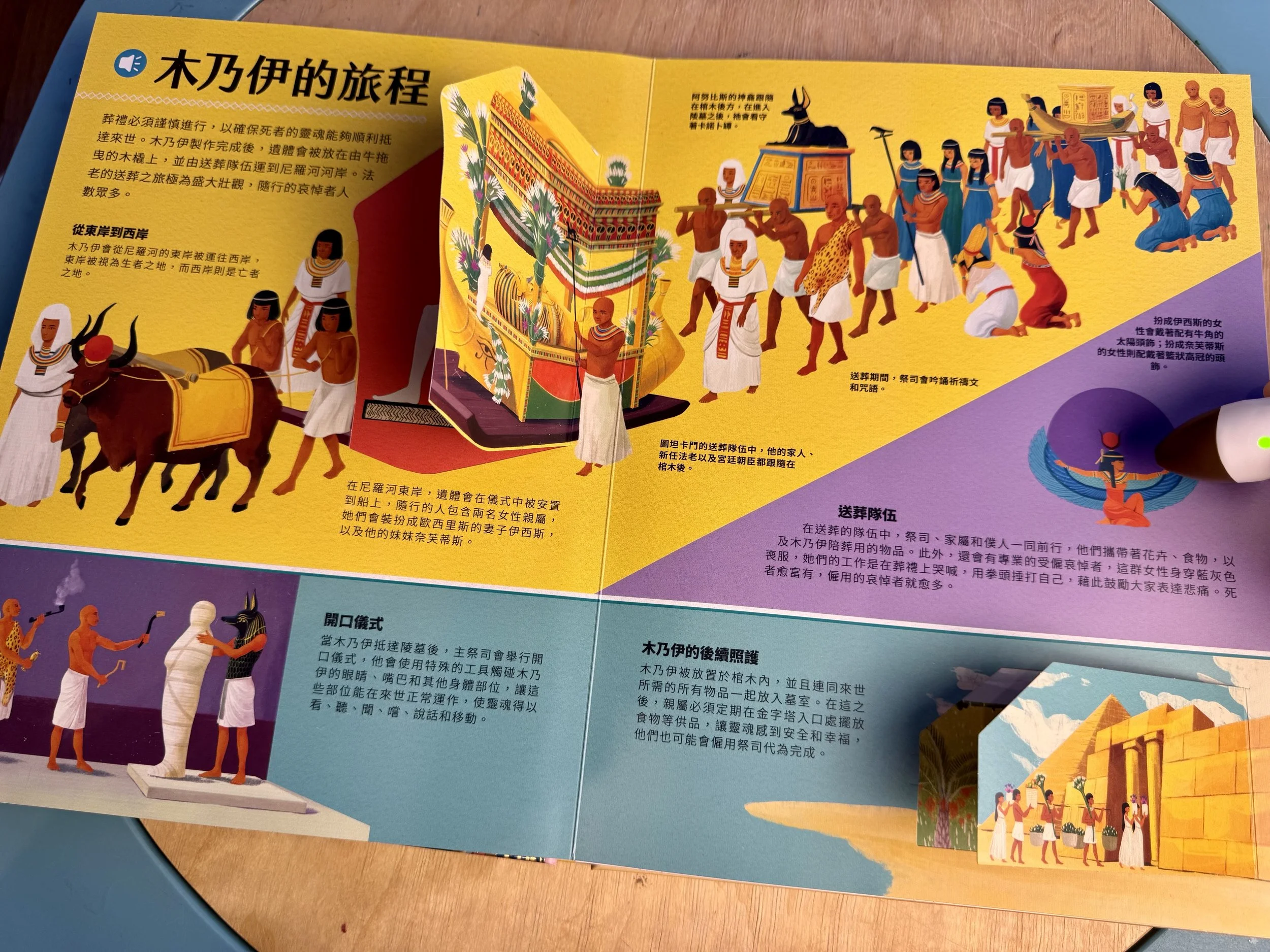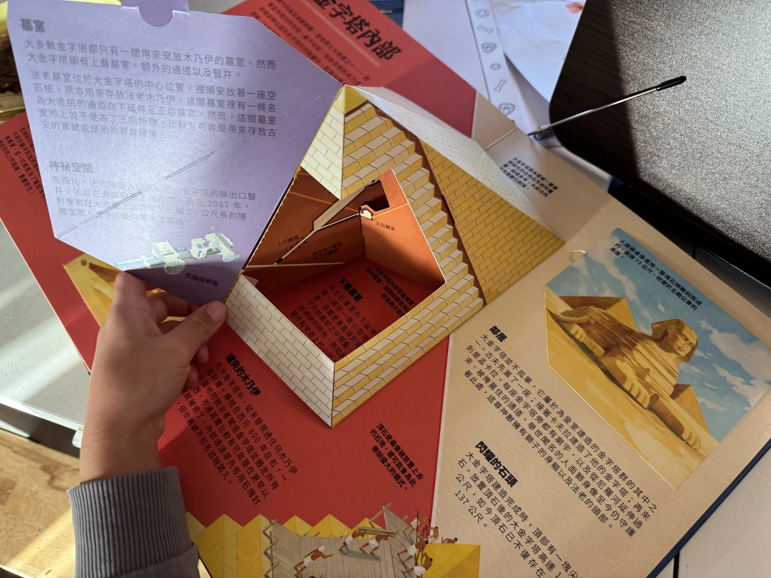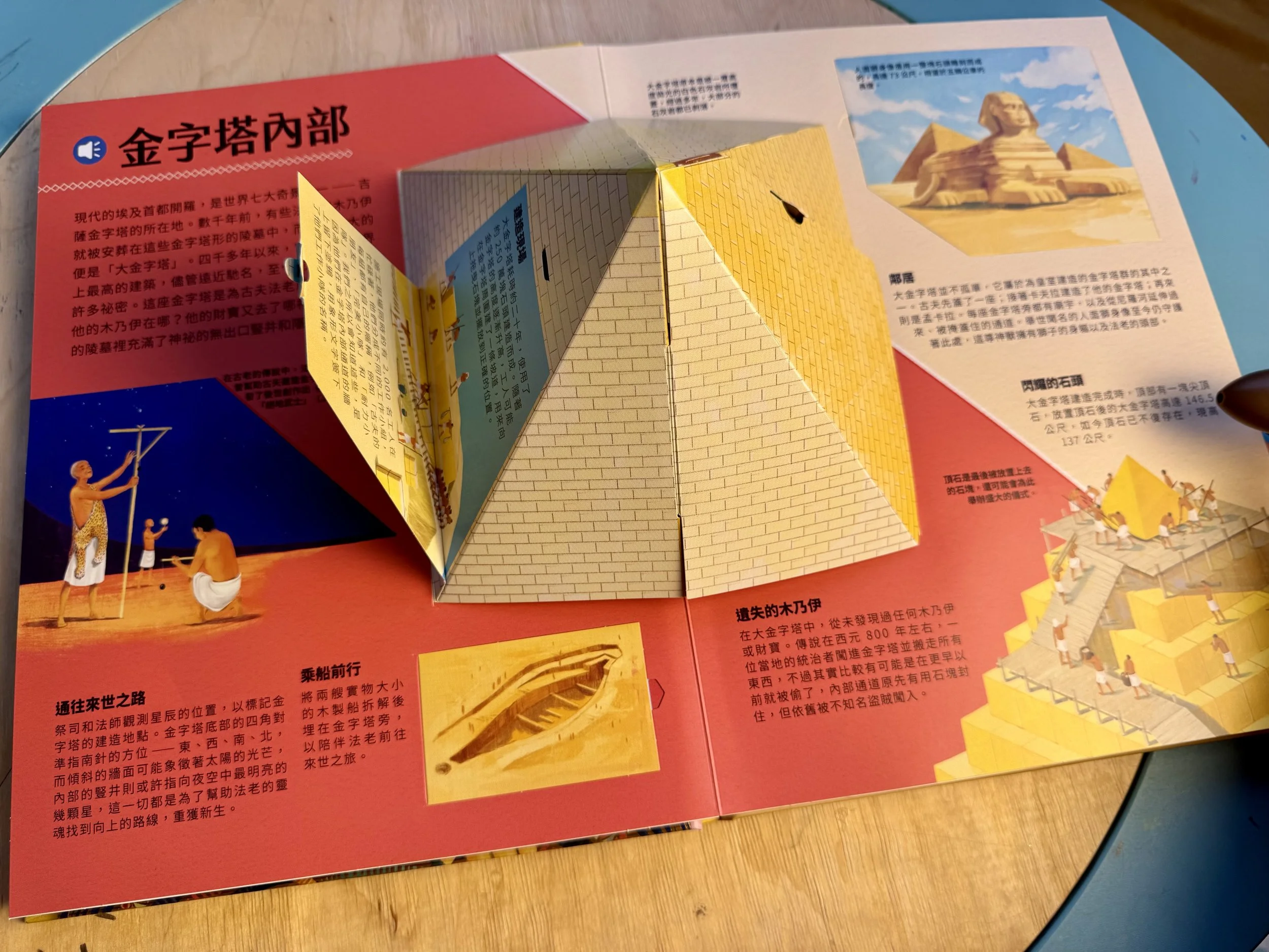 用點讀筆點金字塔上的建築小隊,還有各自氣喘吁吁的辛勤工作對白喔!
