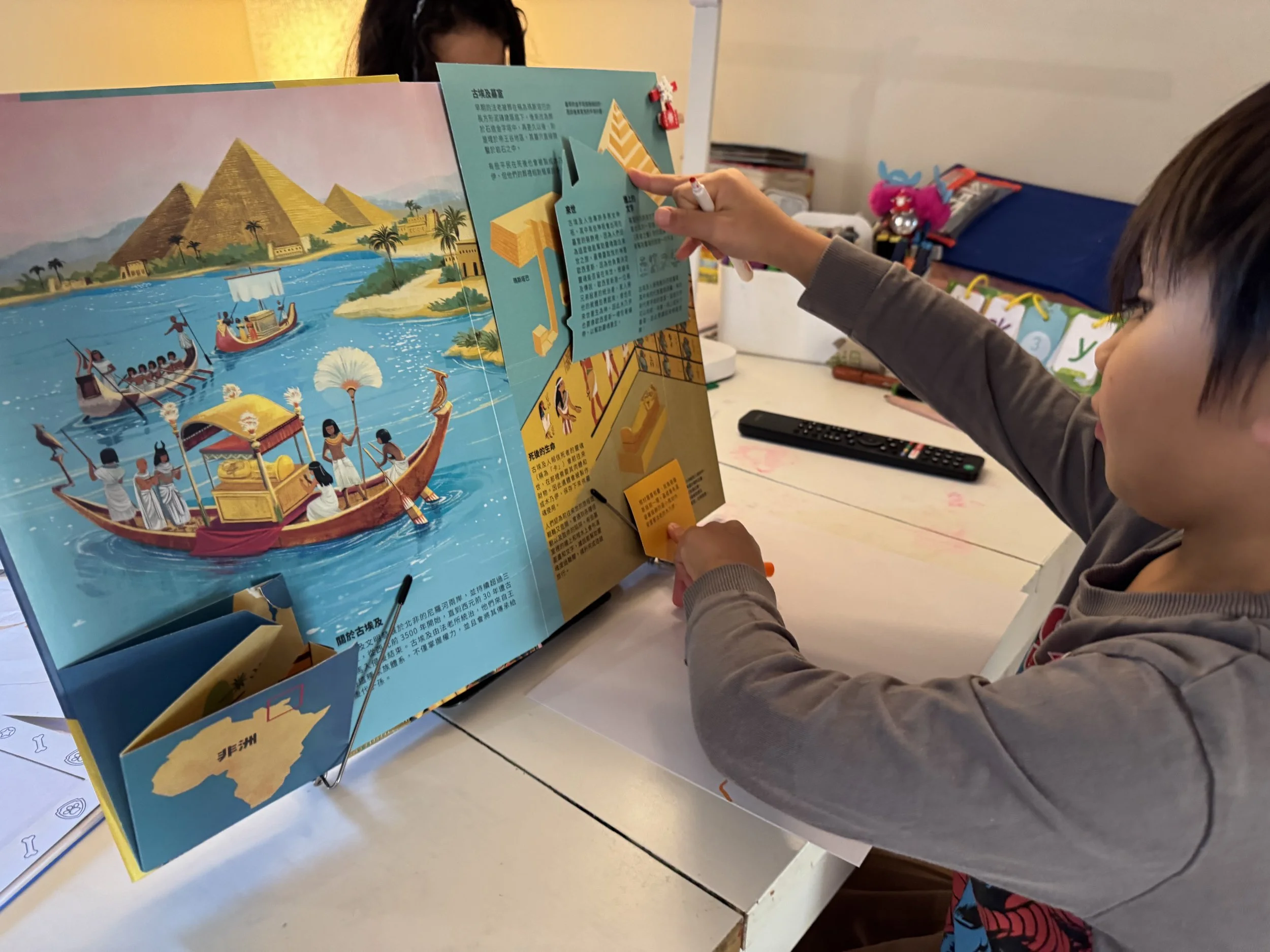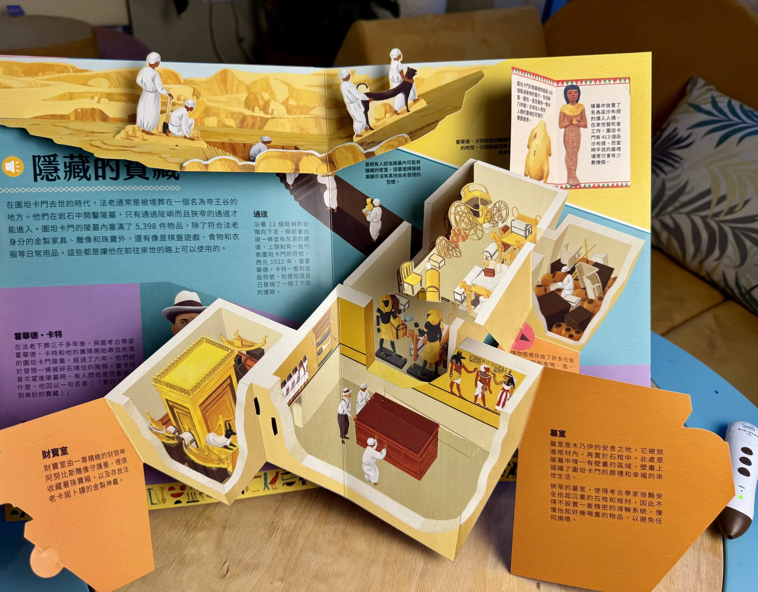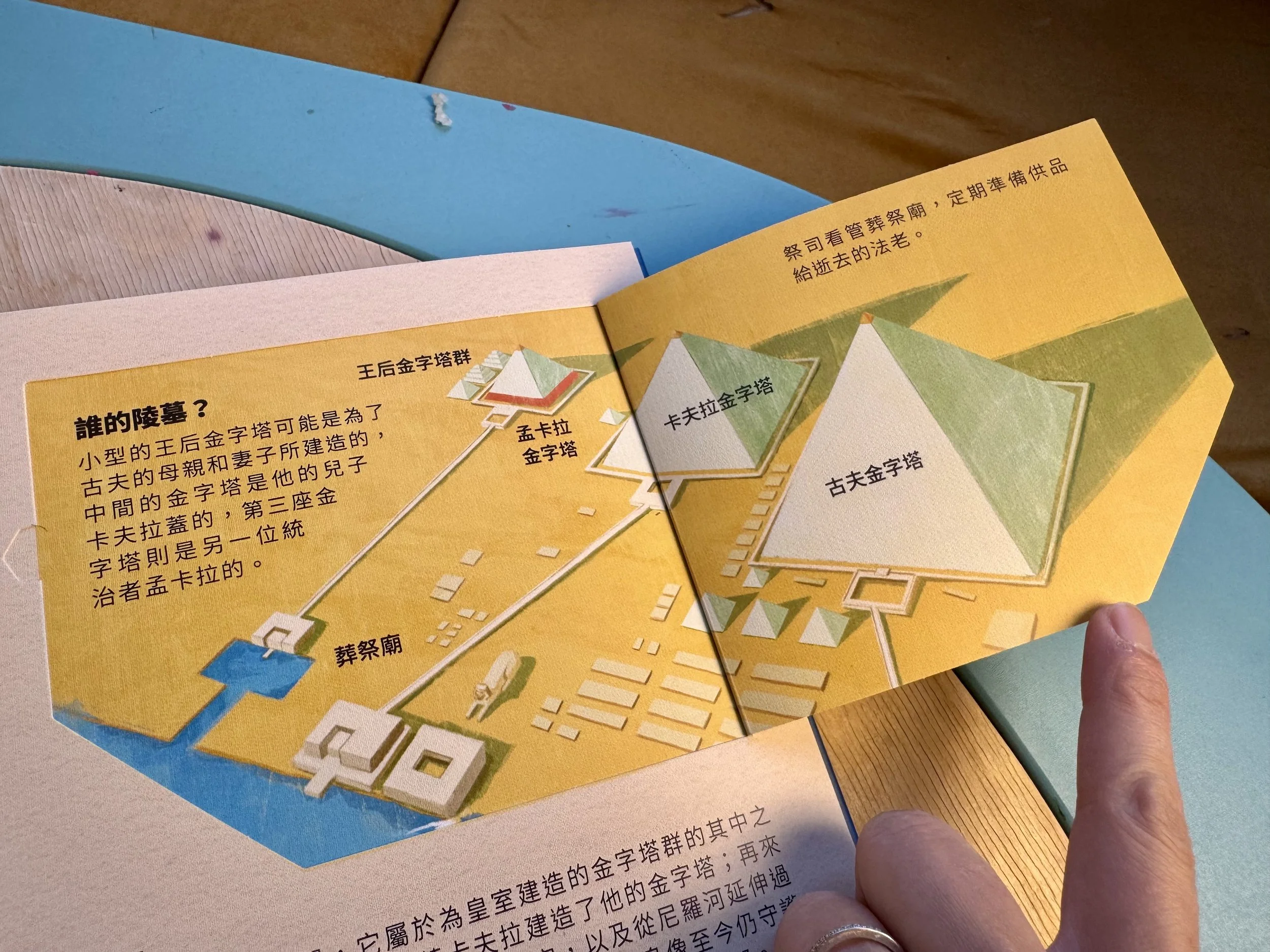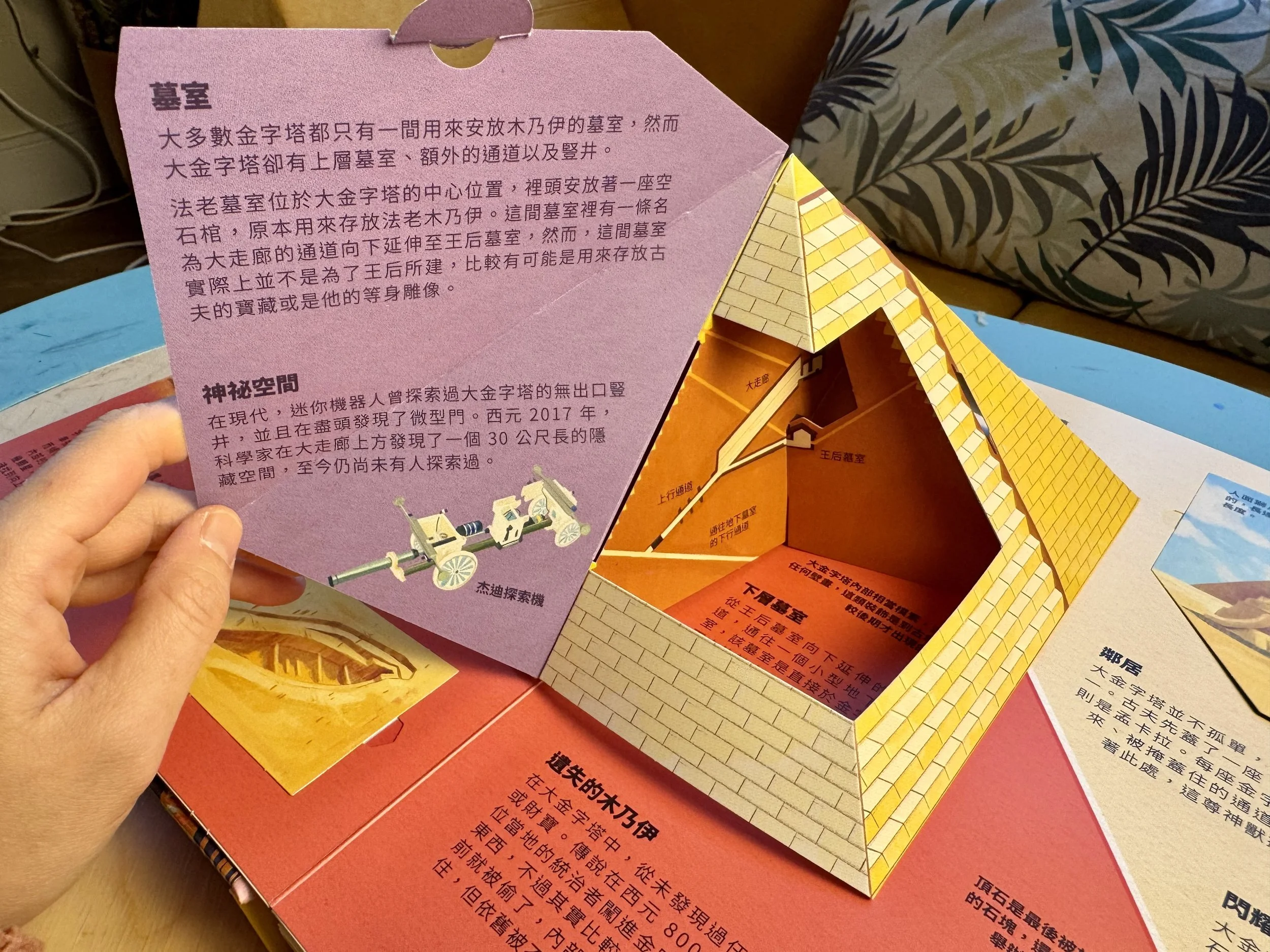 用點讀筆點金字塔上的建築小隊,還有各自氣喘吁吁的辛勤工作對白喔!