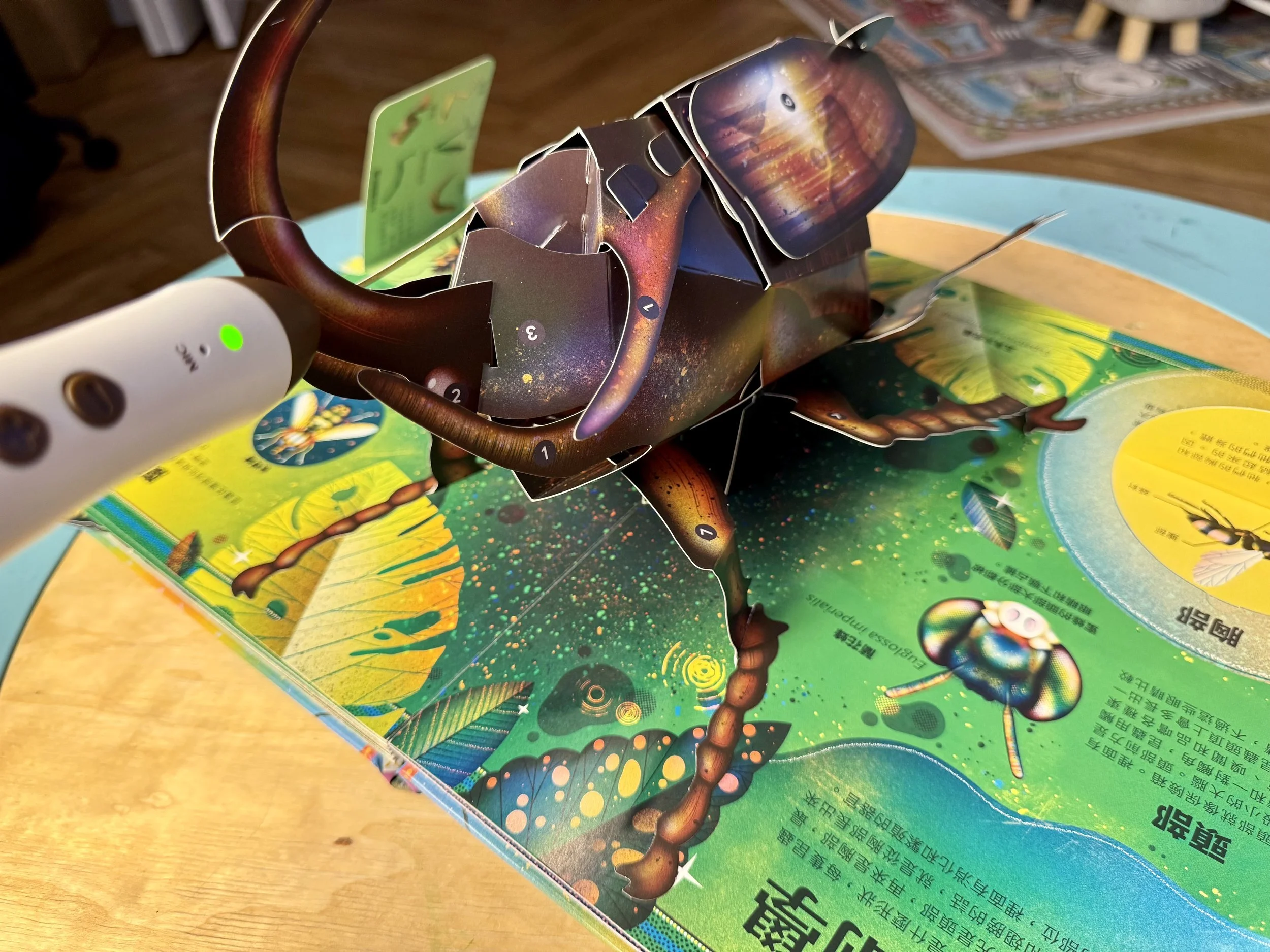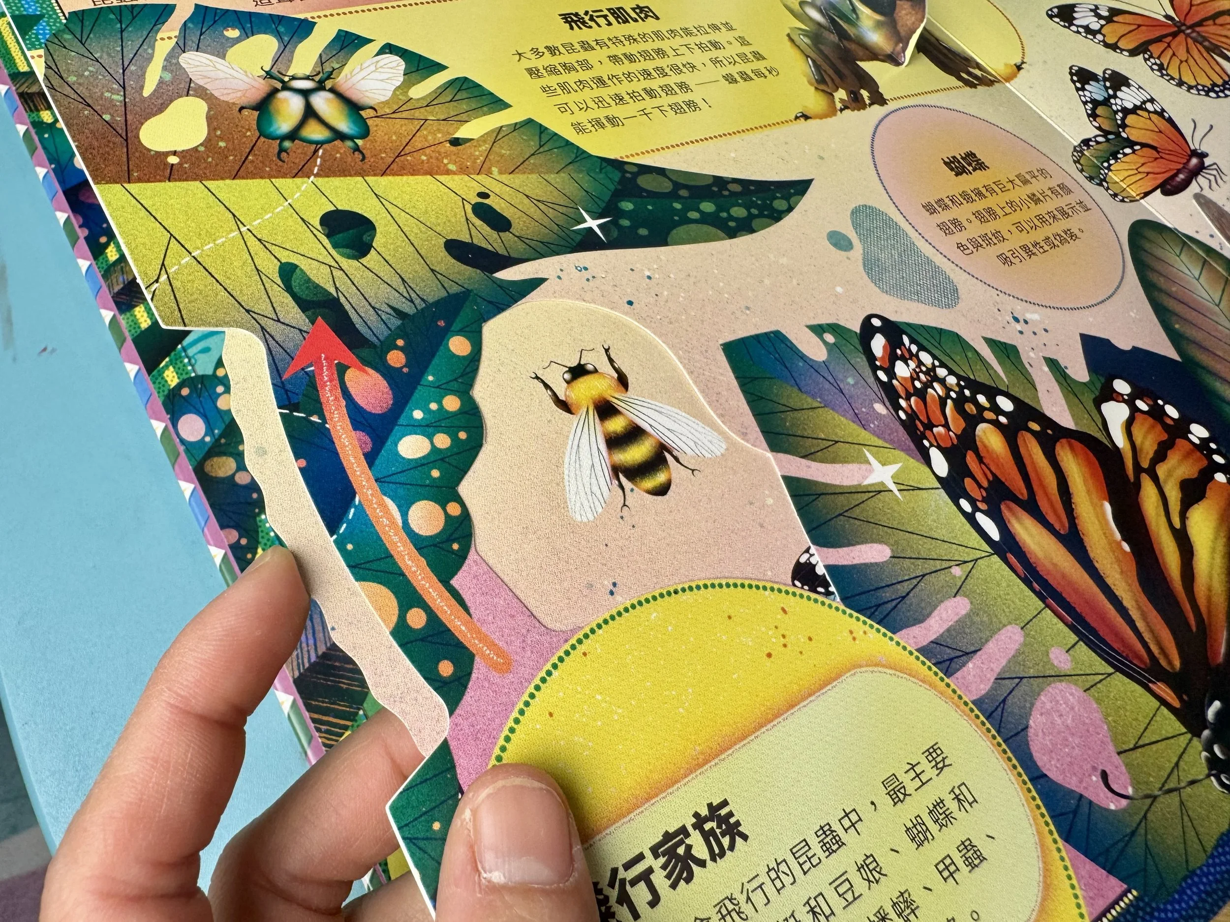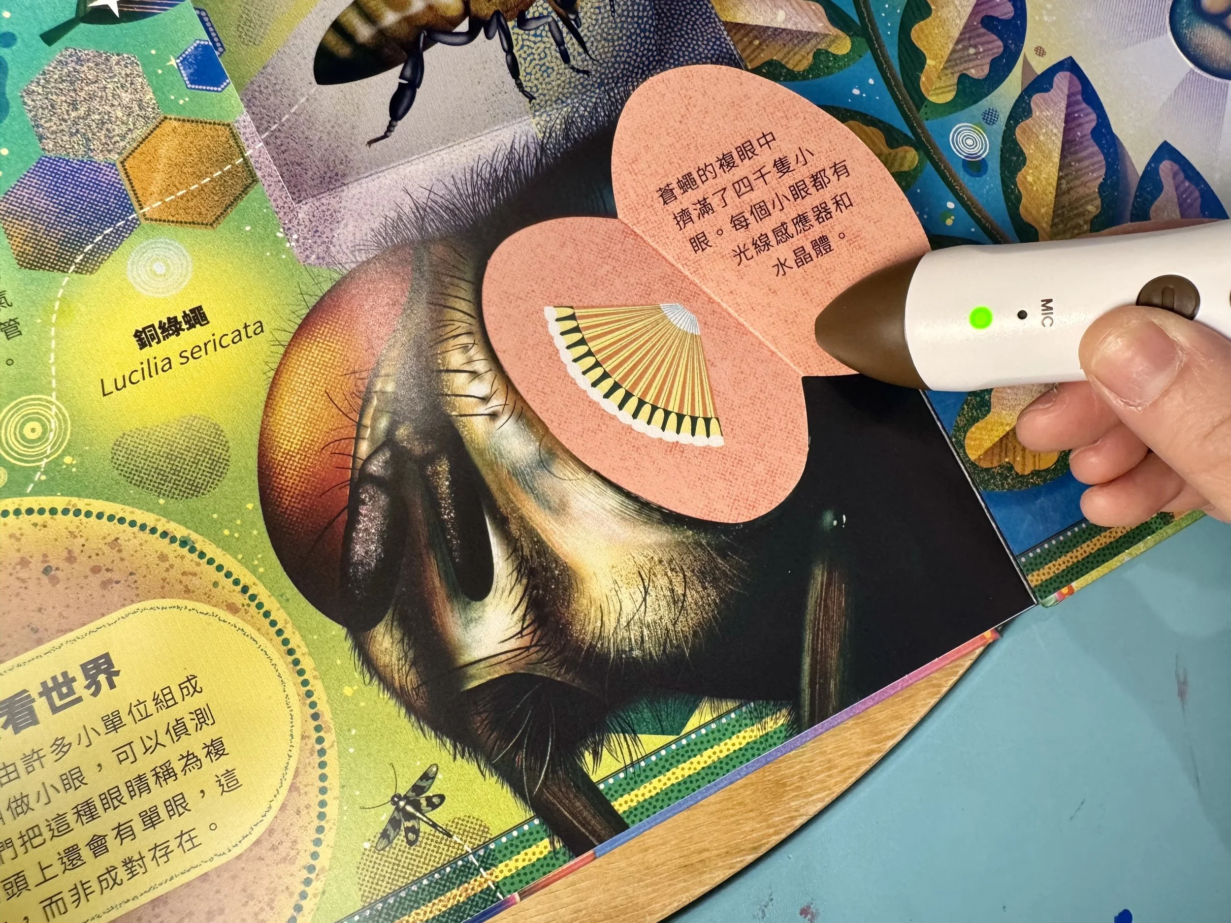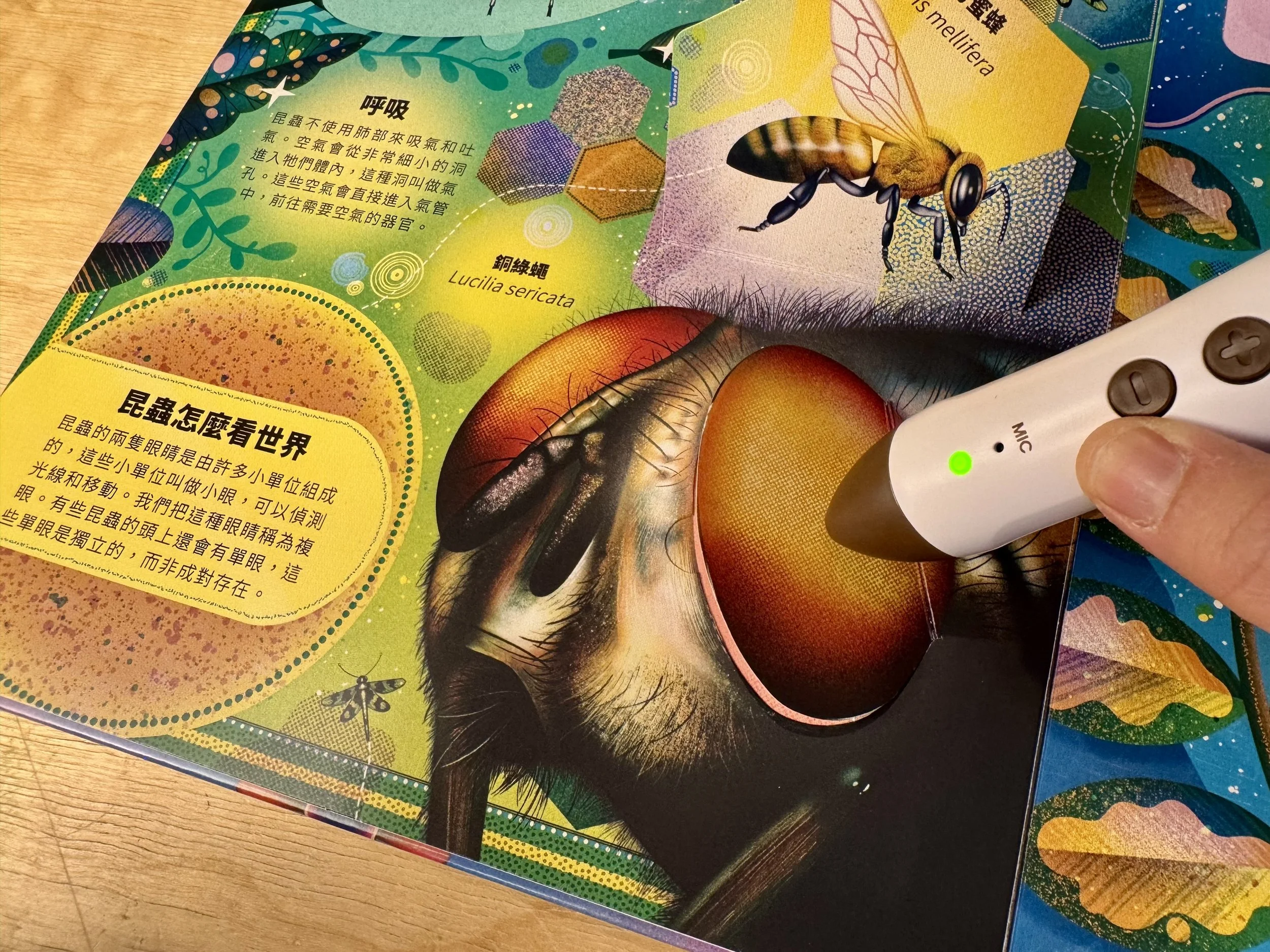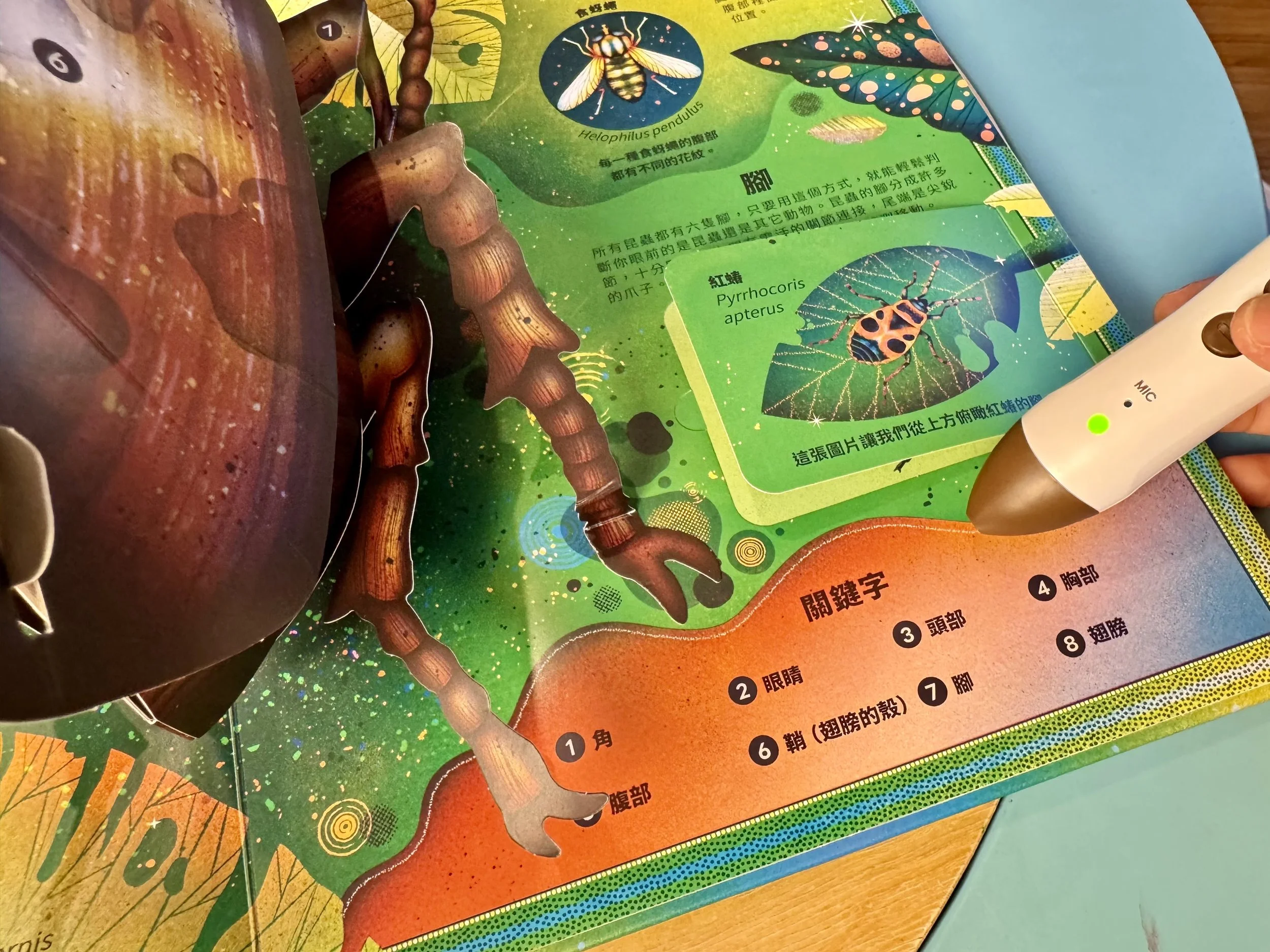 用點讀筆點選小瓢蟲會說:「我們的翅膀能用來飛行,也能摺疊收起。」