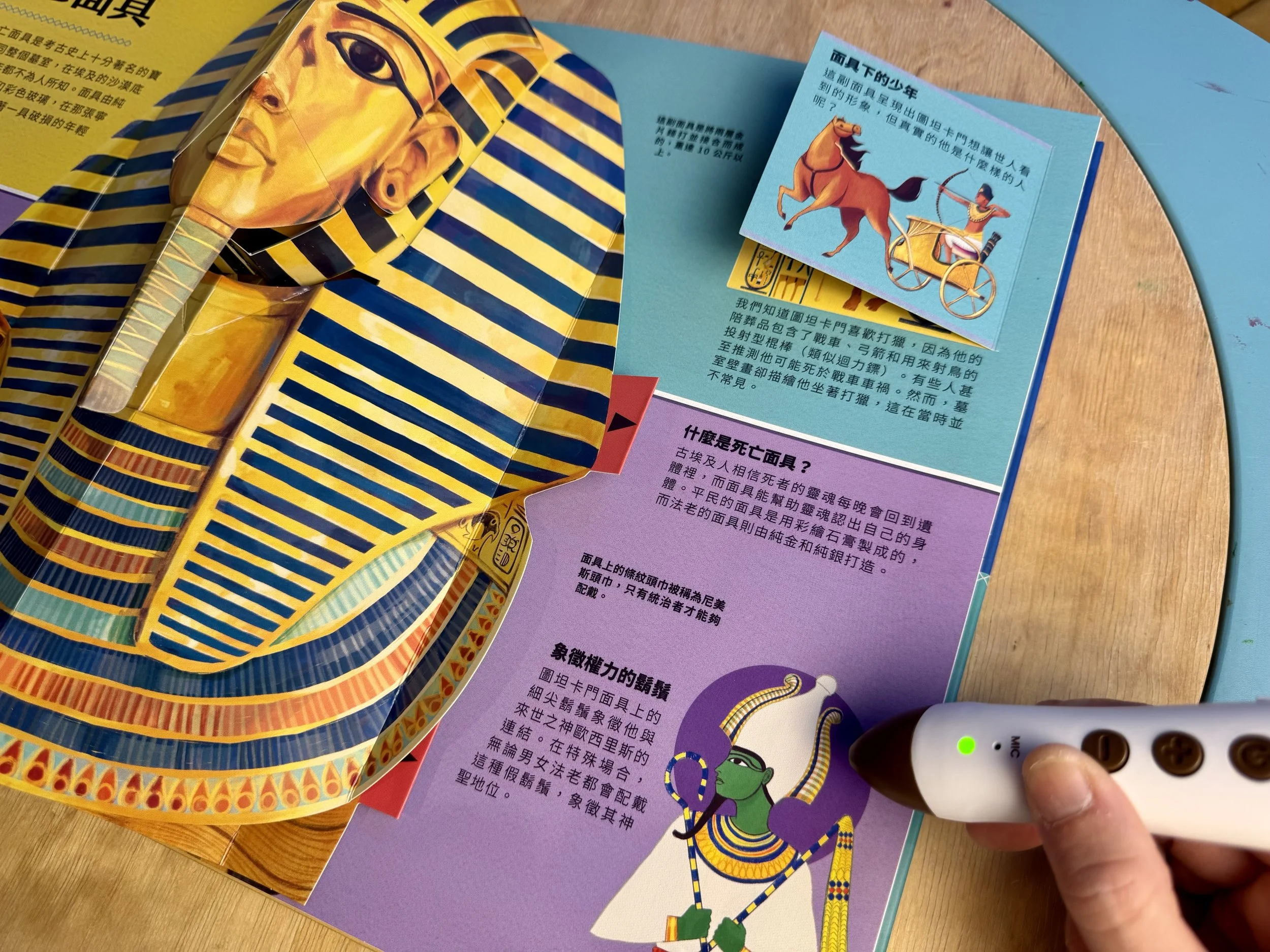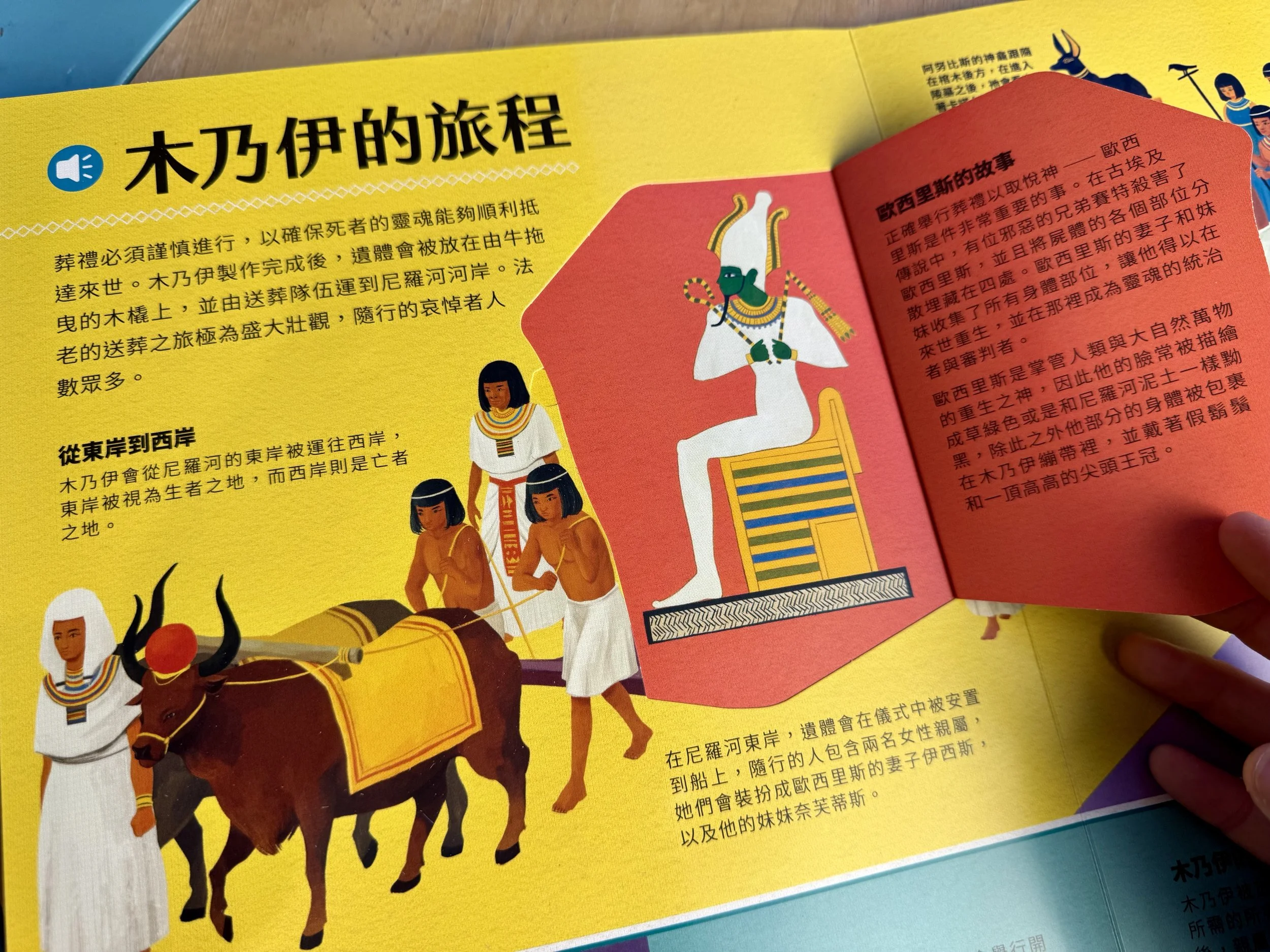 書中給過關於伊西斯 與 奈芙蒂斯的知識,聽完故事後再回來點選書上的人物,還會有互動問答喔!