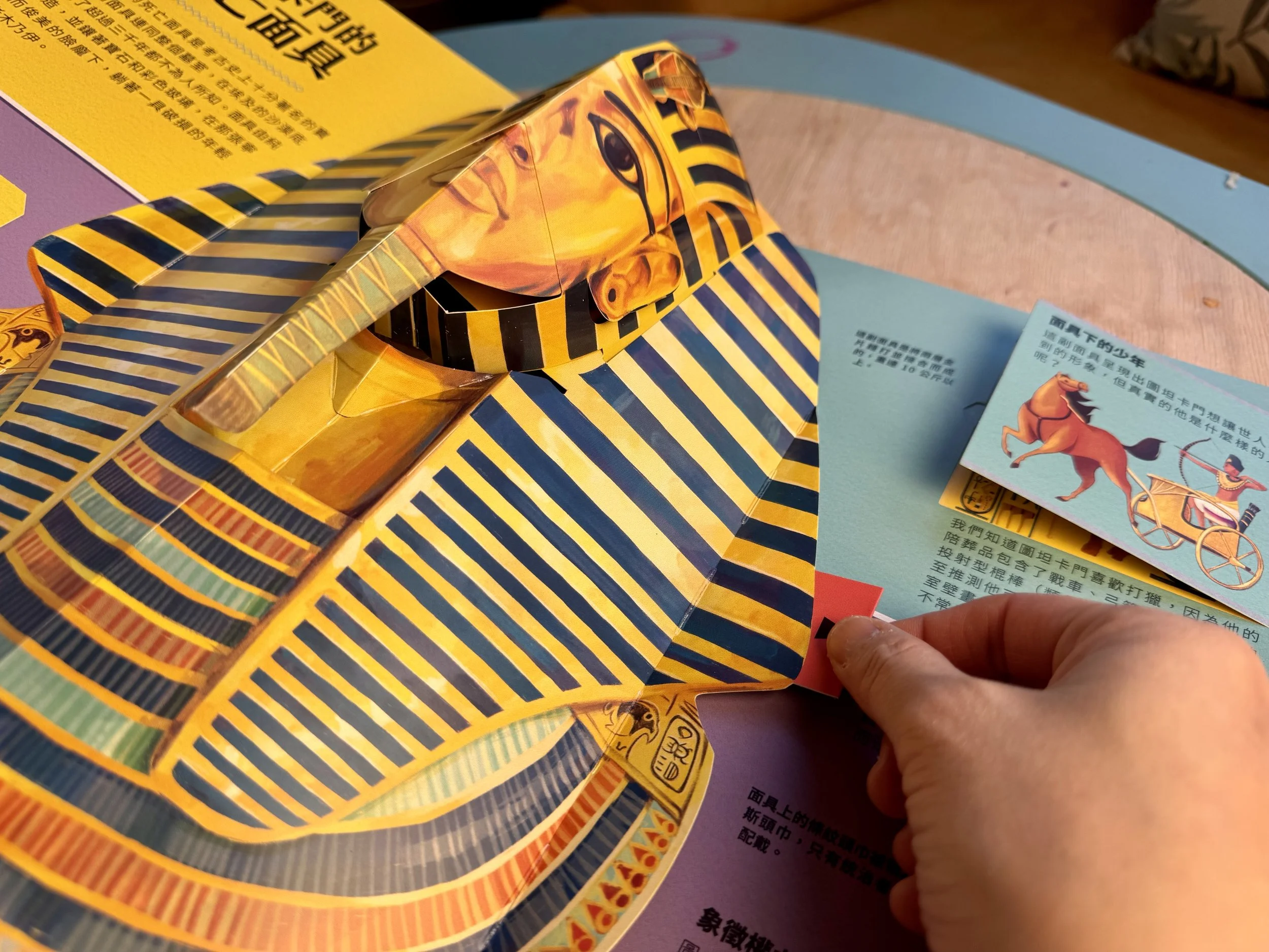 點面具上方會說:「圖坦卡門的面具真好看,不知道最底下的本人是不是也這麼帥?」