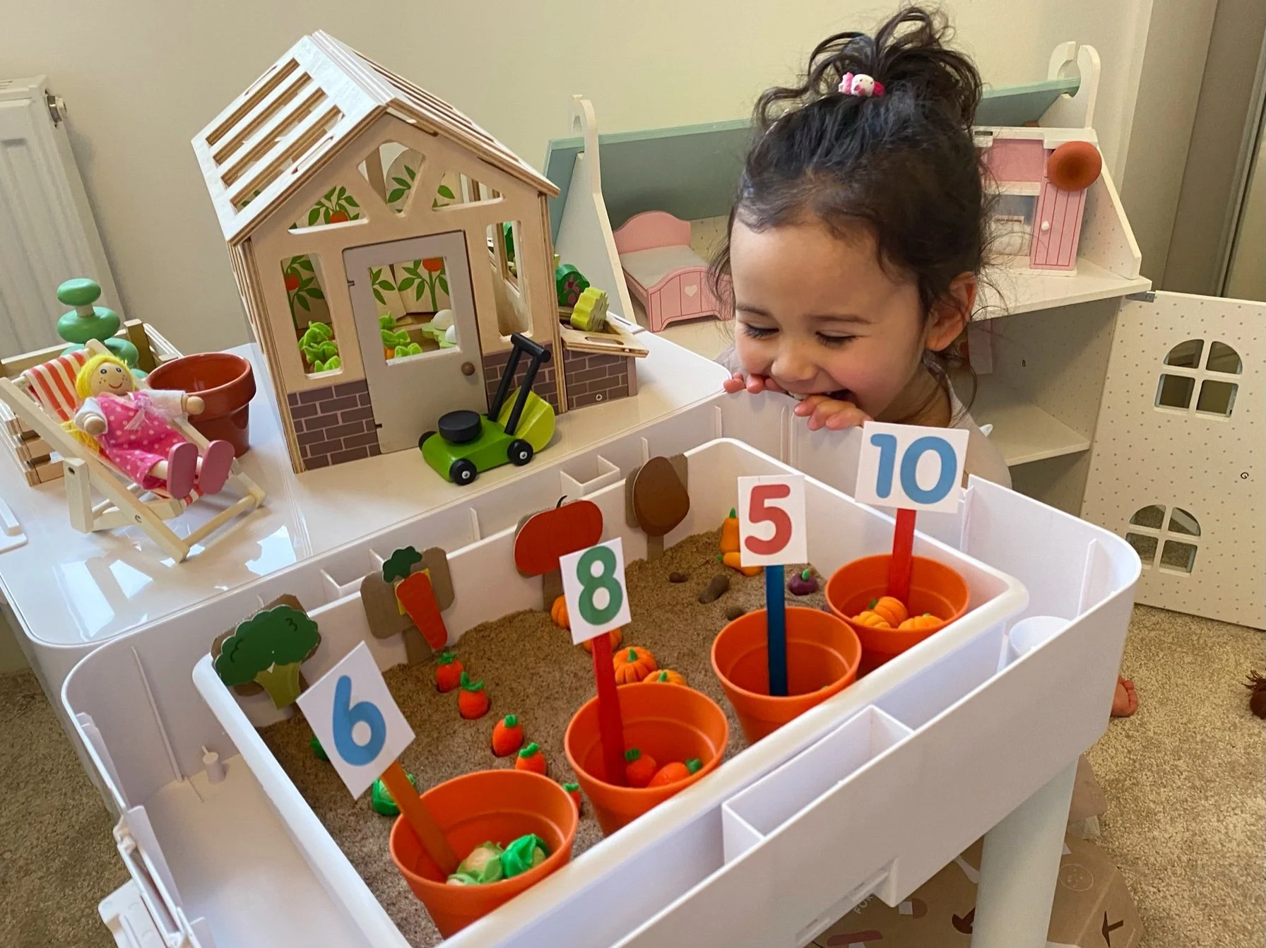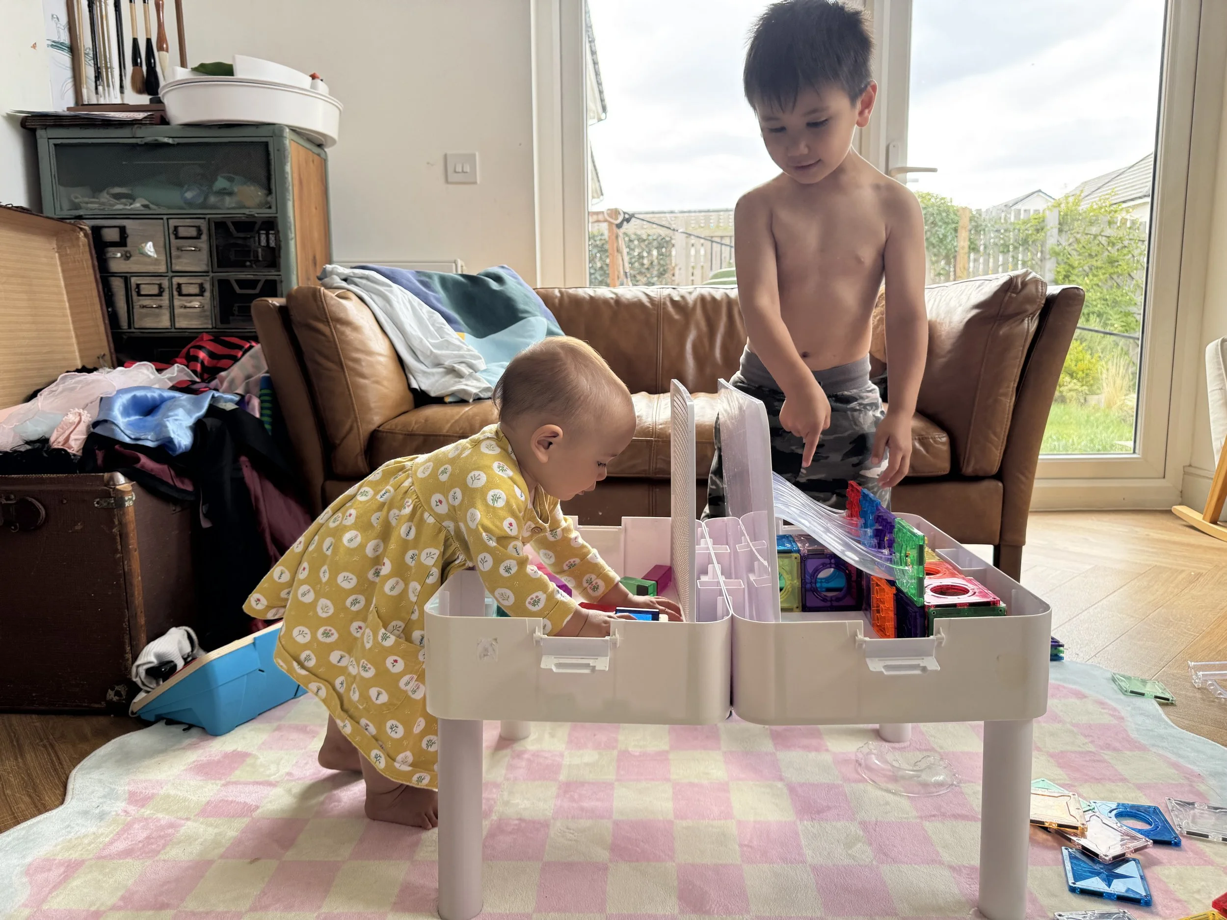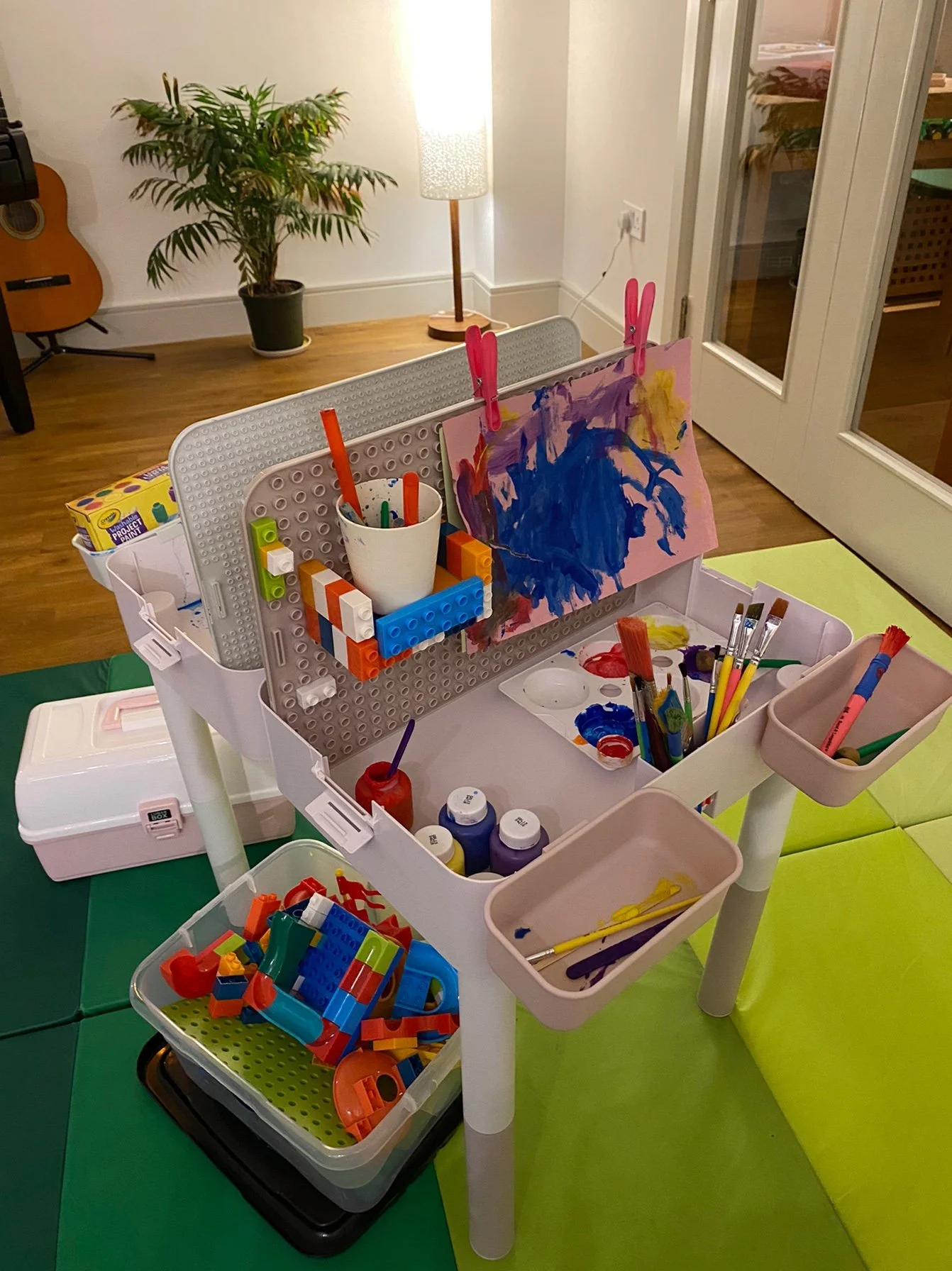 尤其是在兩年前英國第一次封城時,媽咪當時做的第一件事就是上Amazon下單Sand + Water table👉 讓小孩至少能夠在露台玩沙玩水玩泡泡;又為了能在家玩更多遊戲和積木樂高,進而入手了(另一張)多功能的MUtable(樂高桌)。