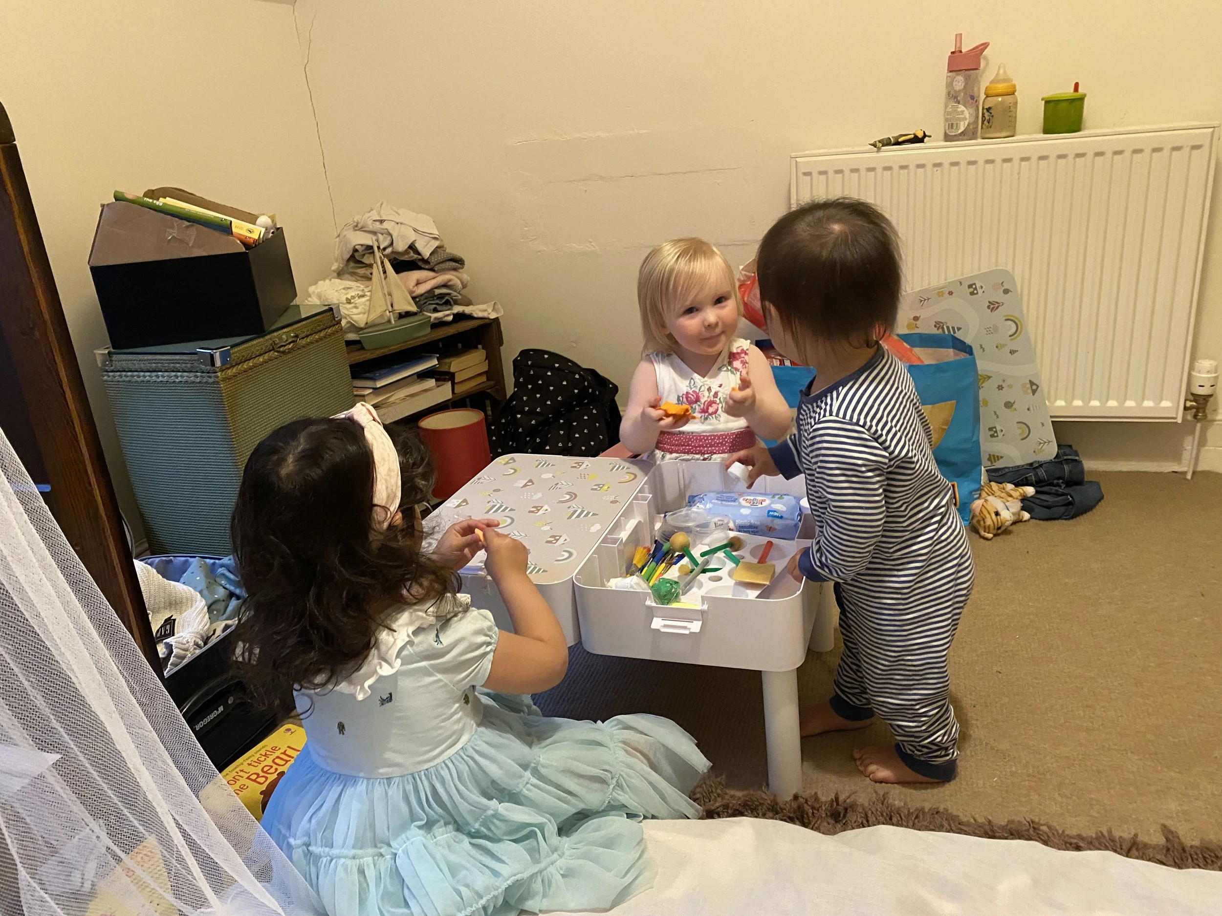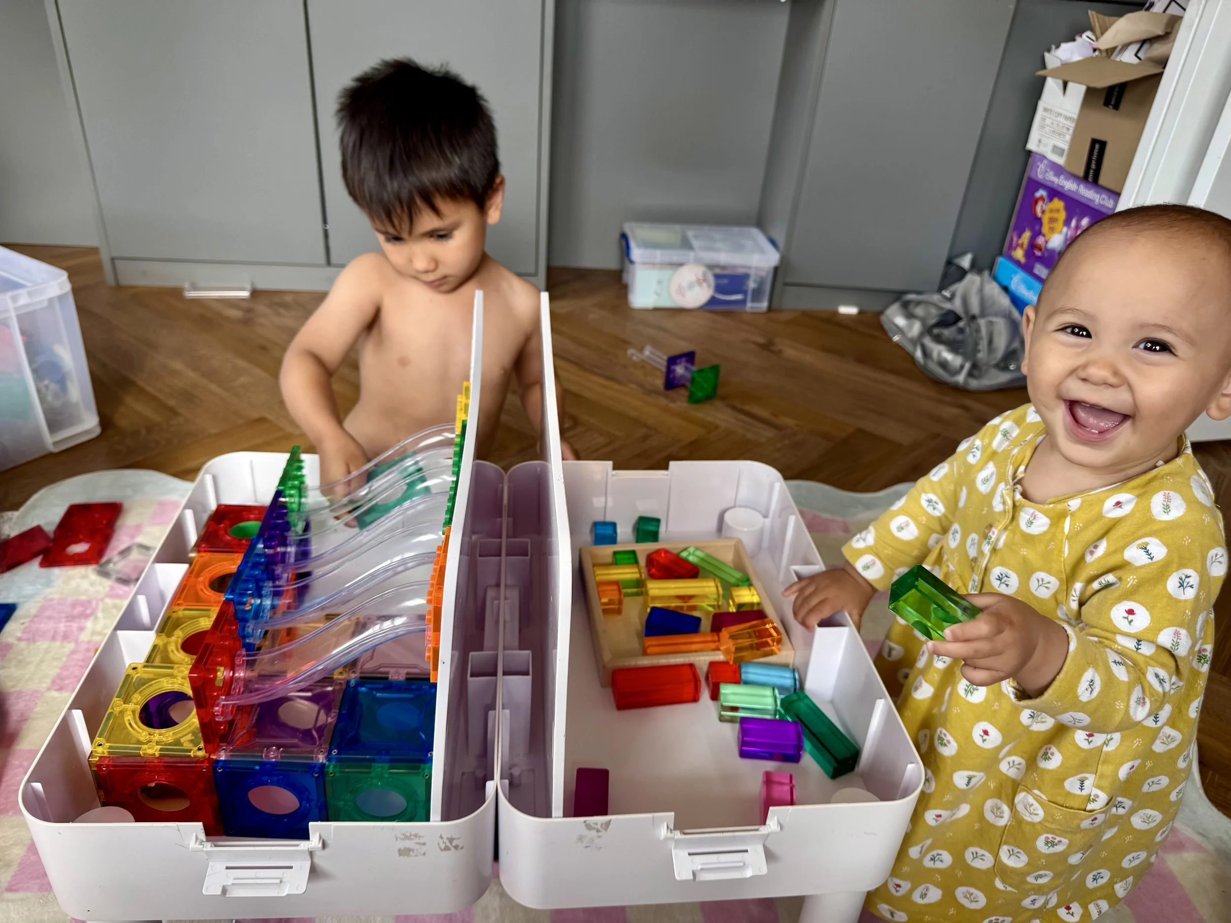 我家兩個孩子相差23個月,大小寶需求不同,一人玩一邊不吵架;