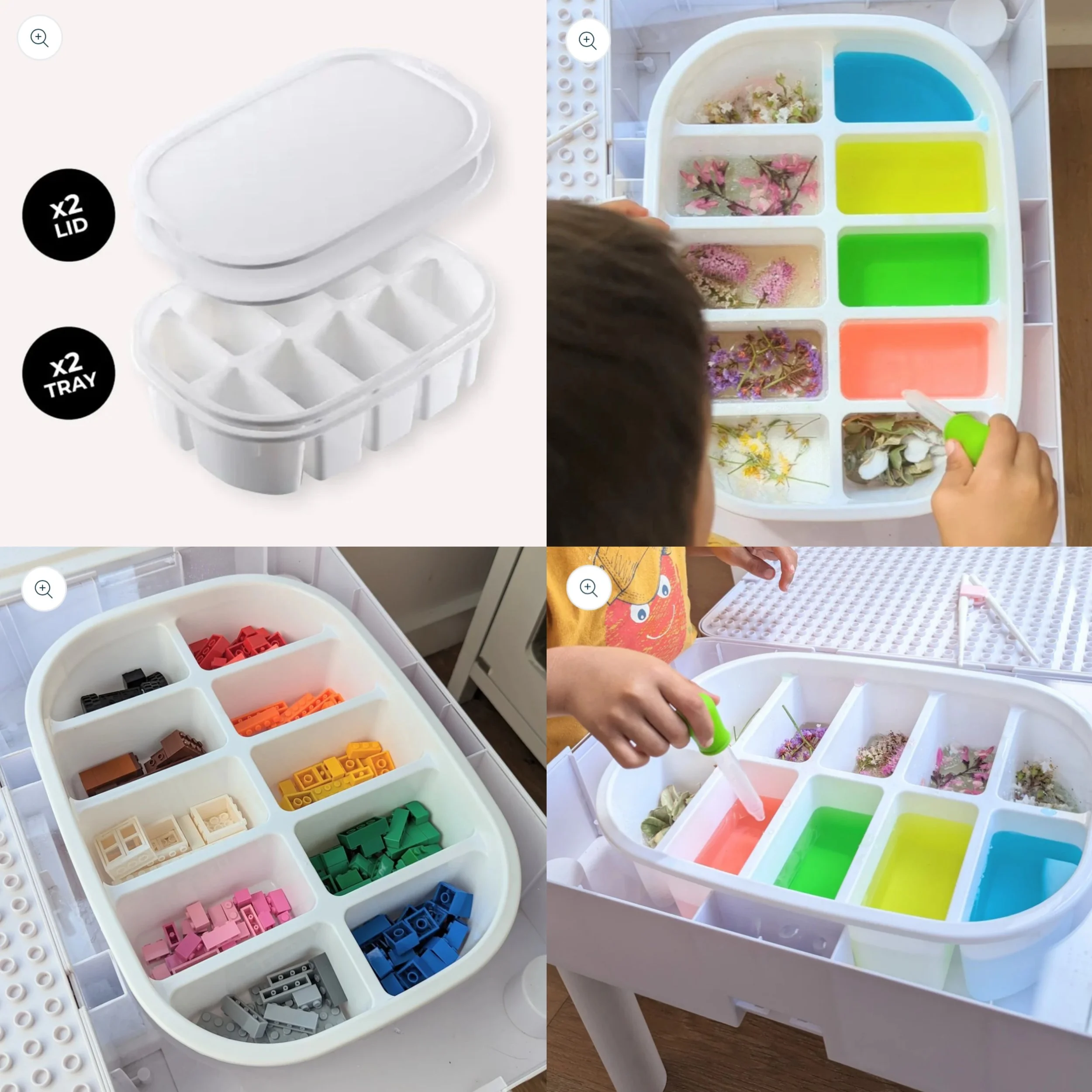 4個貼心的側邊收納盒方便清洗(可以放所有的感官遊戲小玩具、水杯、中場點心)