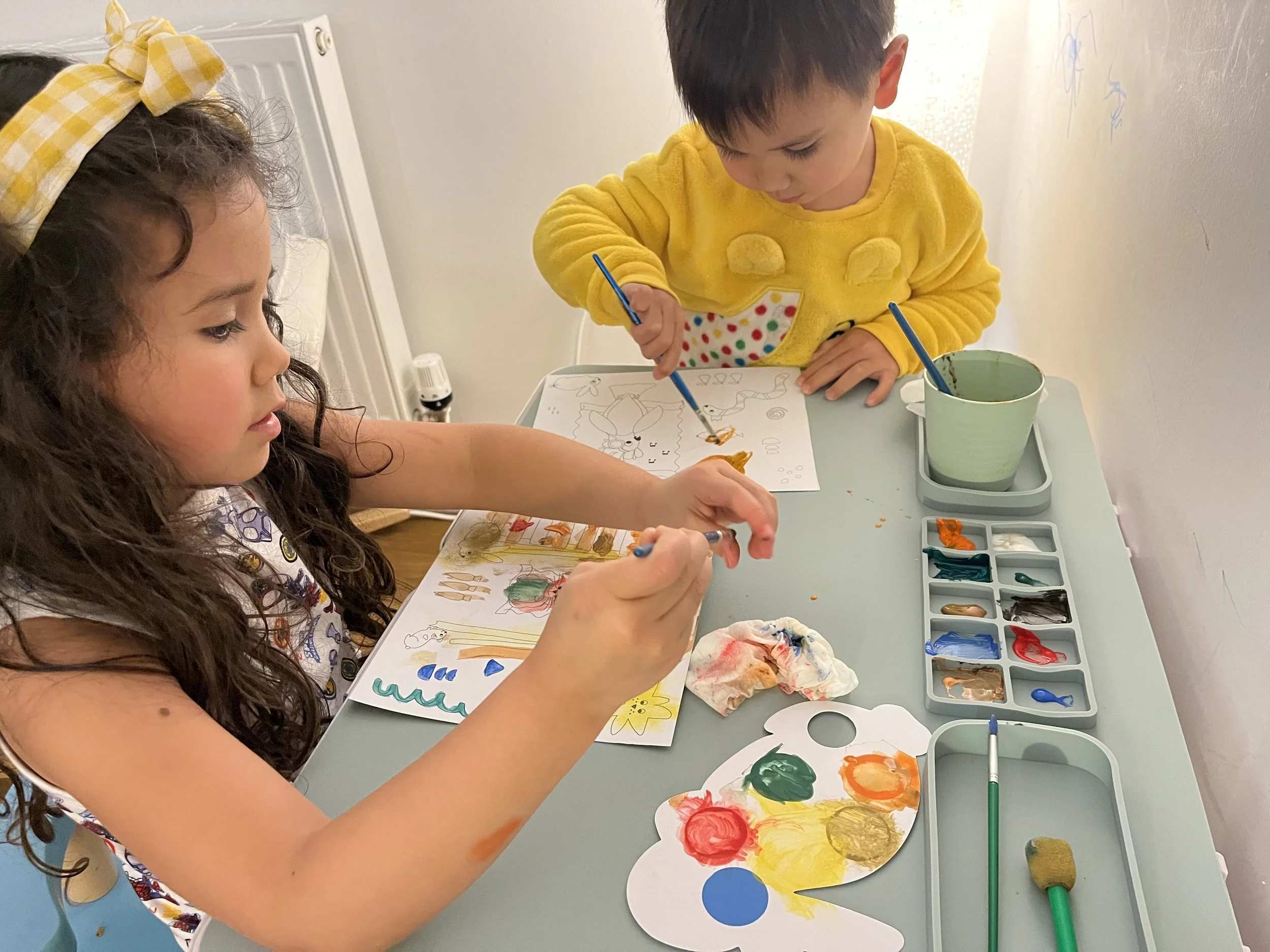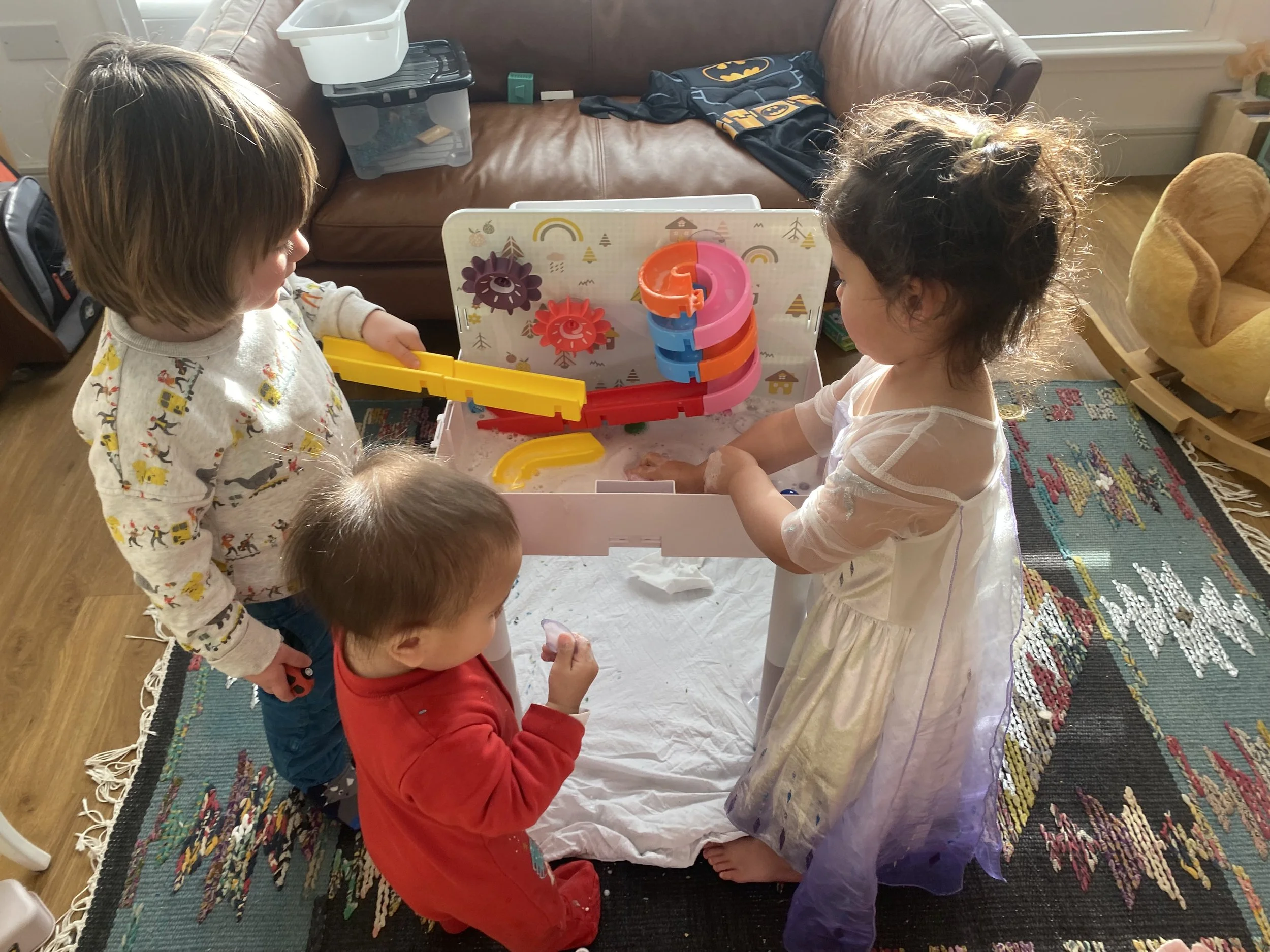 身為家中兩位年幼孩子的全職陪玩傭人,一天當中帶著孩子玩不同的遊戲、體驗不同感官探索。
