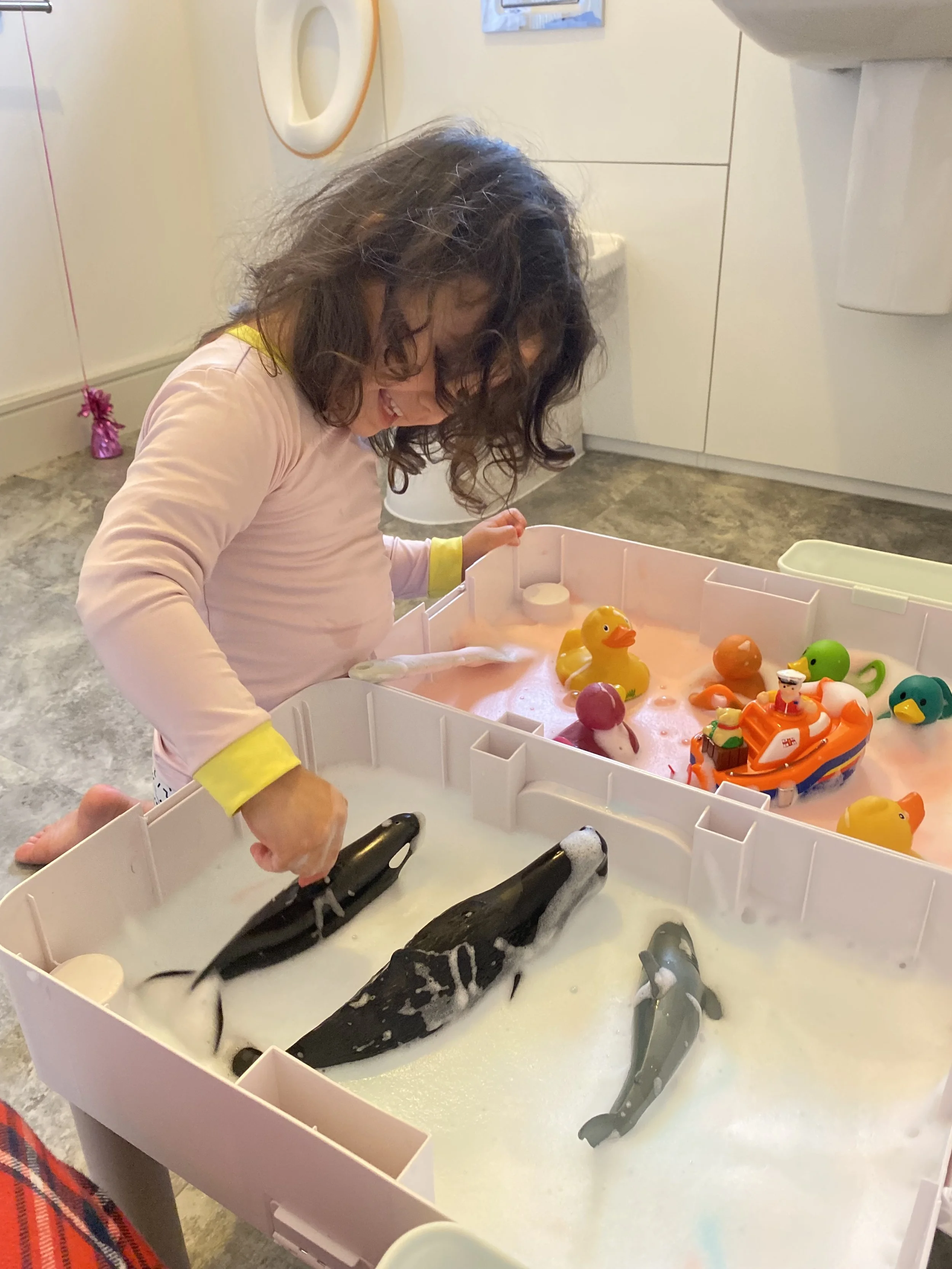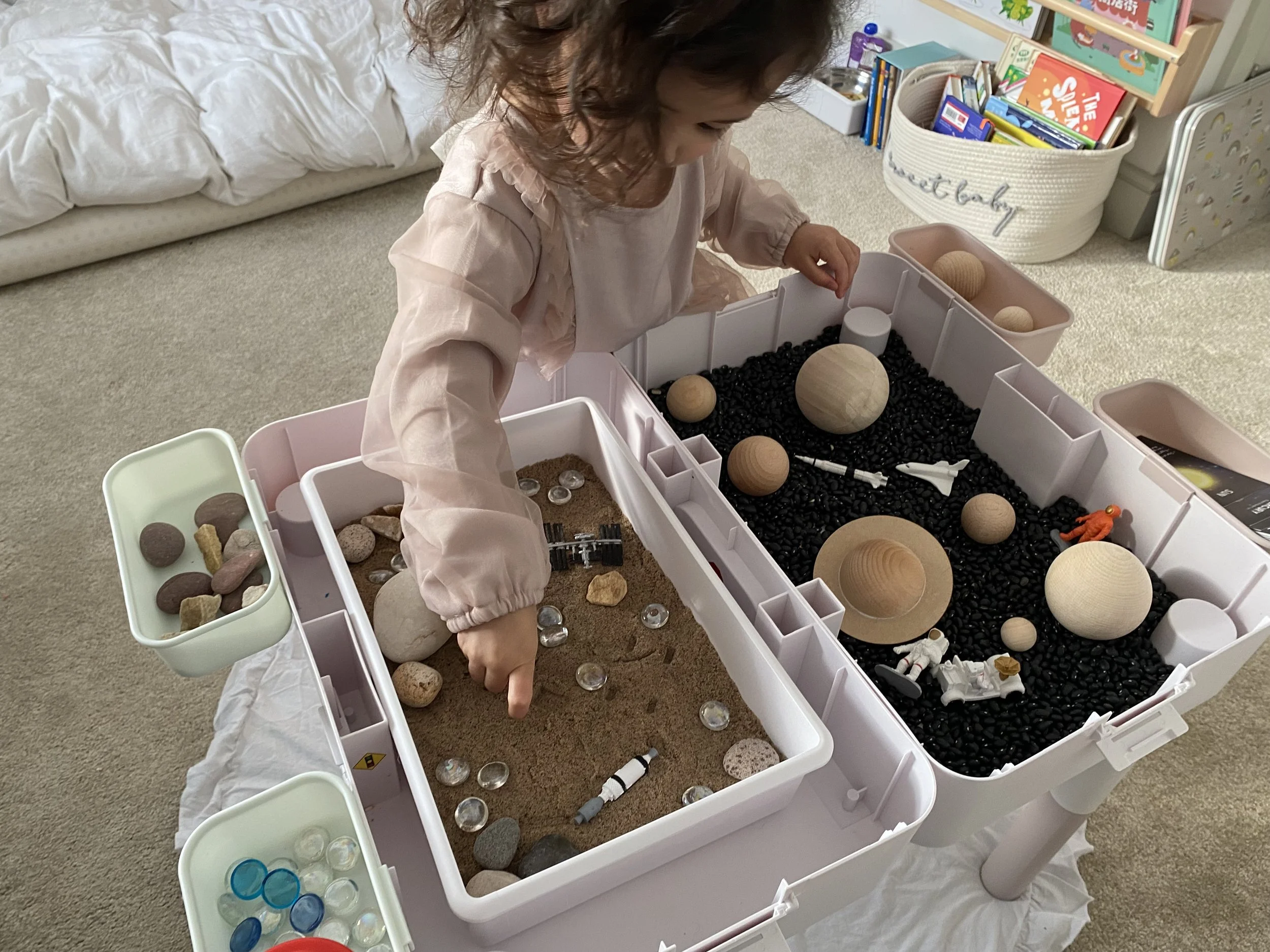 終於找到心目中完美的play table sensory experience,希望大家也會喜歡 :-)