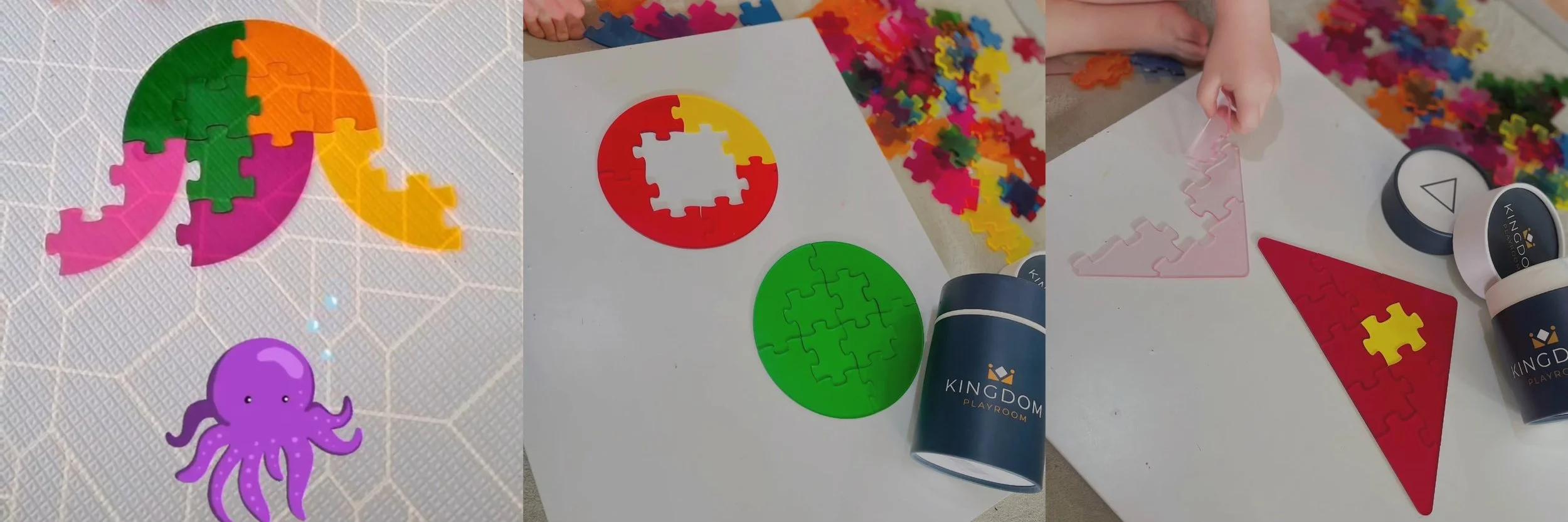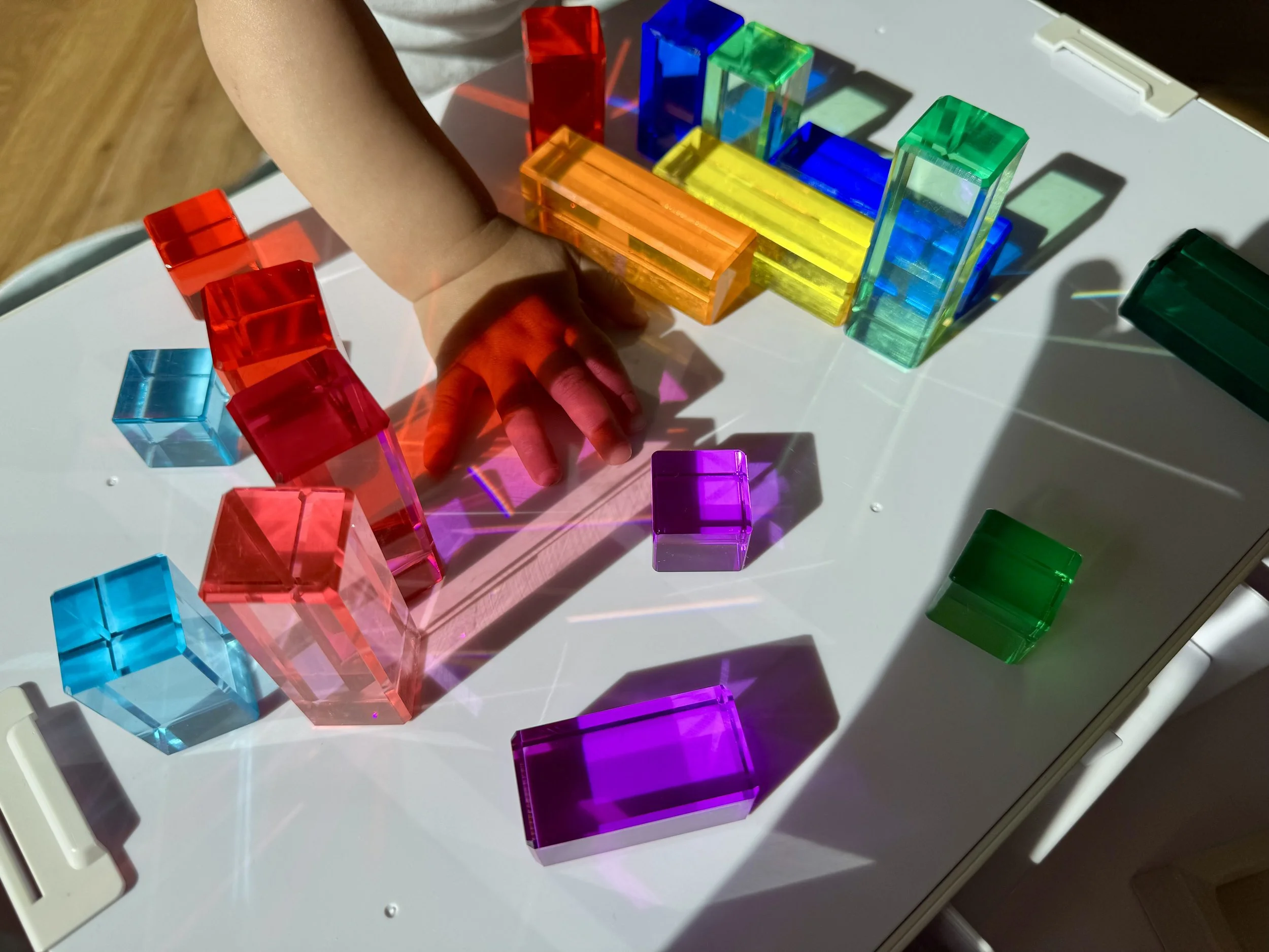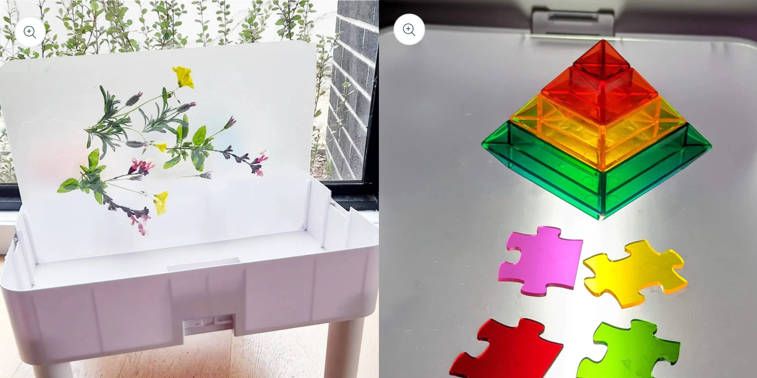 透光拼圖 + 透明桌版,還可以搭配磁力片玩「光與影」的遊戲。