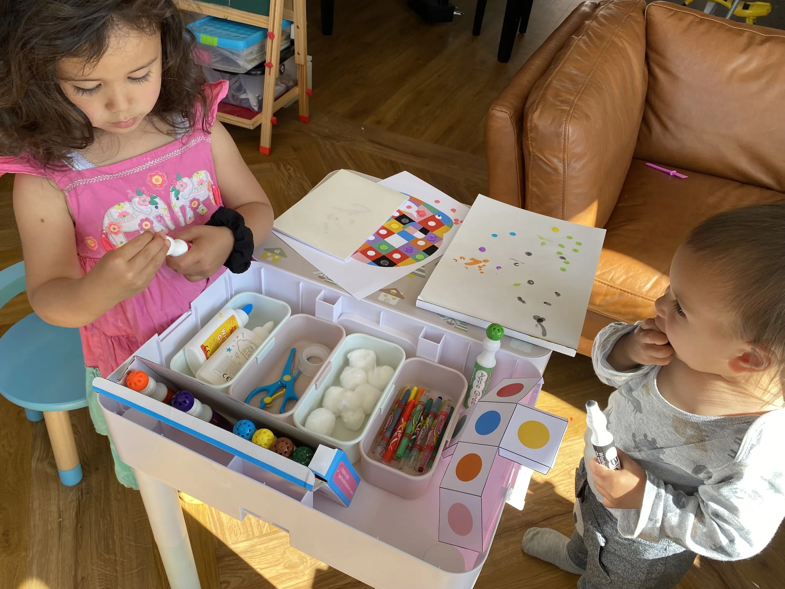 一張桌子可以結合多種玩法,多功能的特性讓我家的兩個孩子每天動動手、動動腦就可以忙一整天。