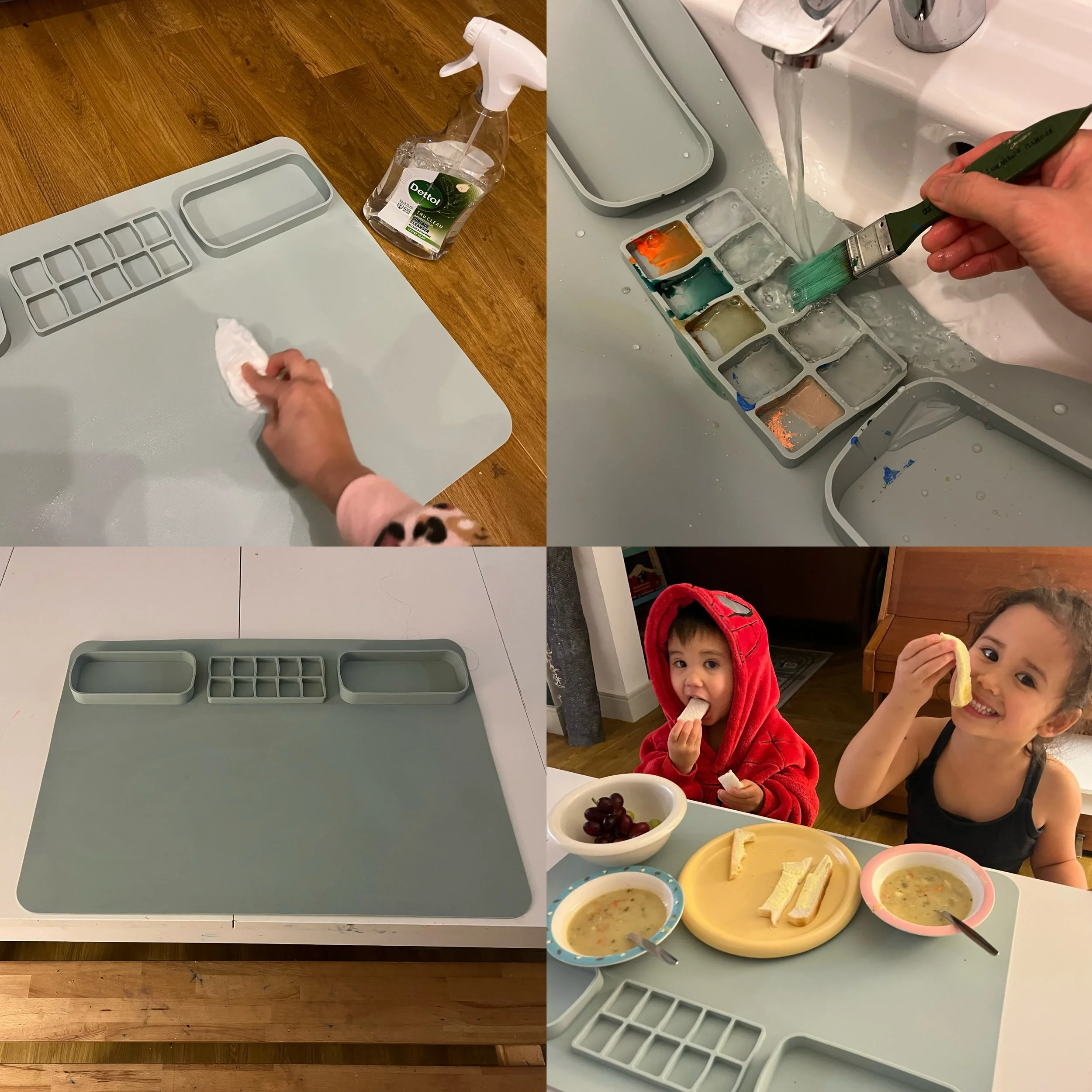 有時候直接拿來當吃點心的餐墊了,因為實在太好清潔,又夠雙寶兩人同時使用。