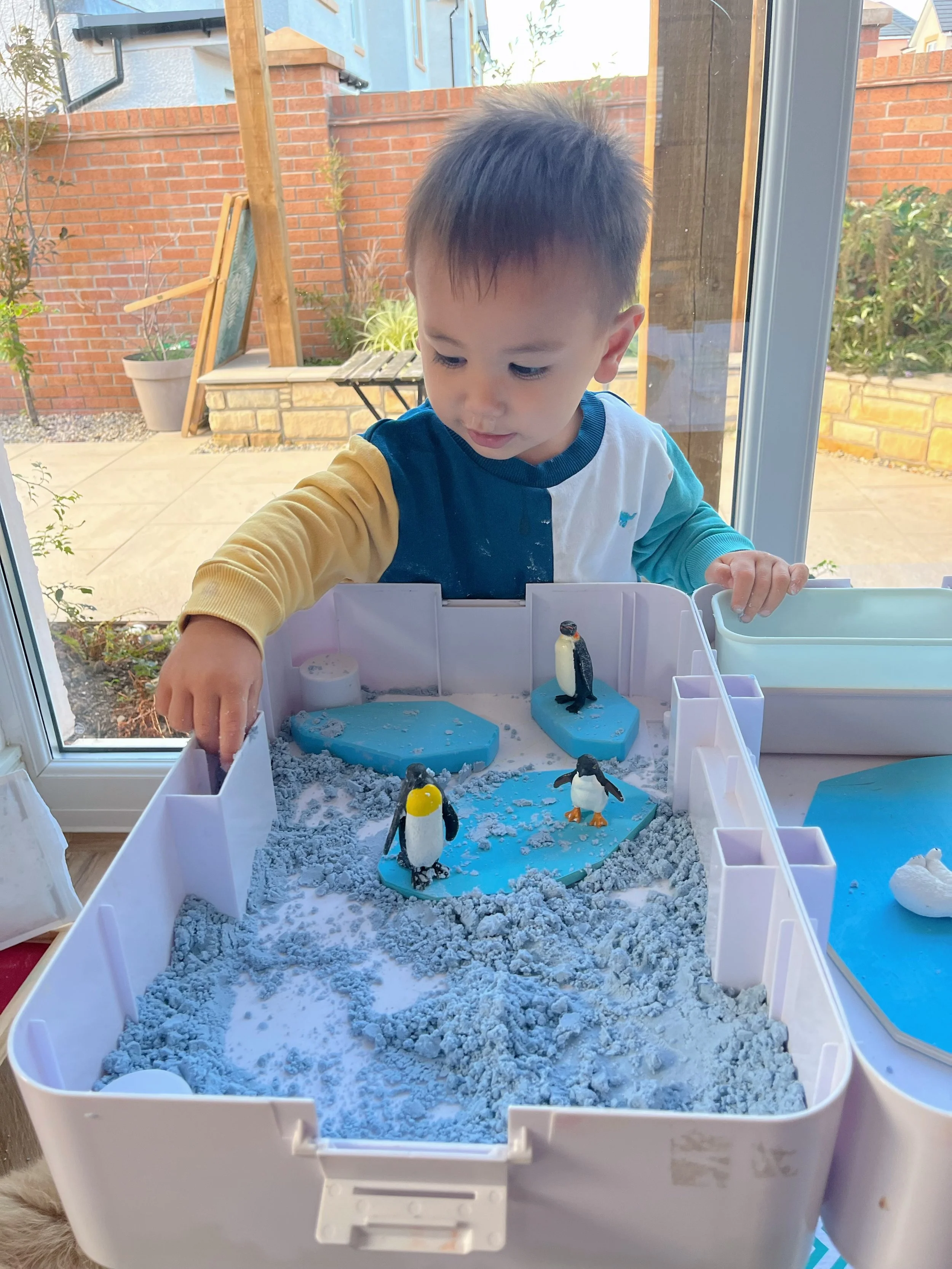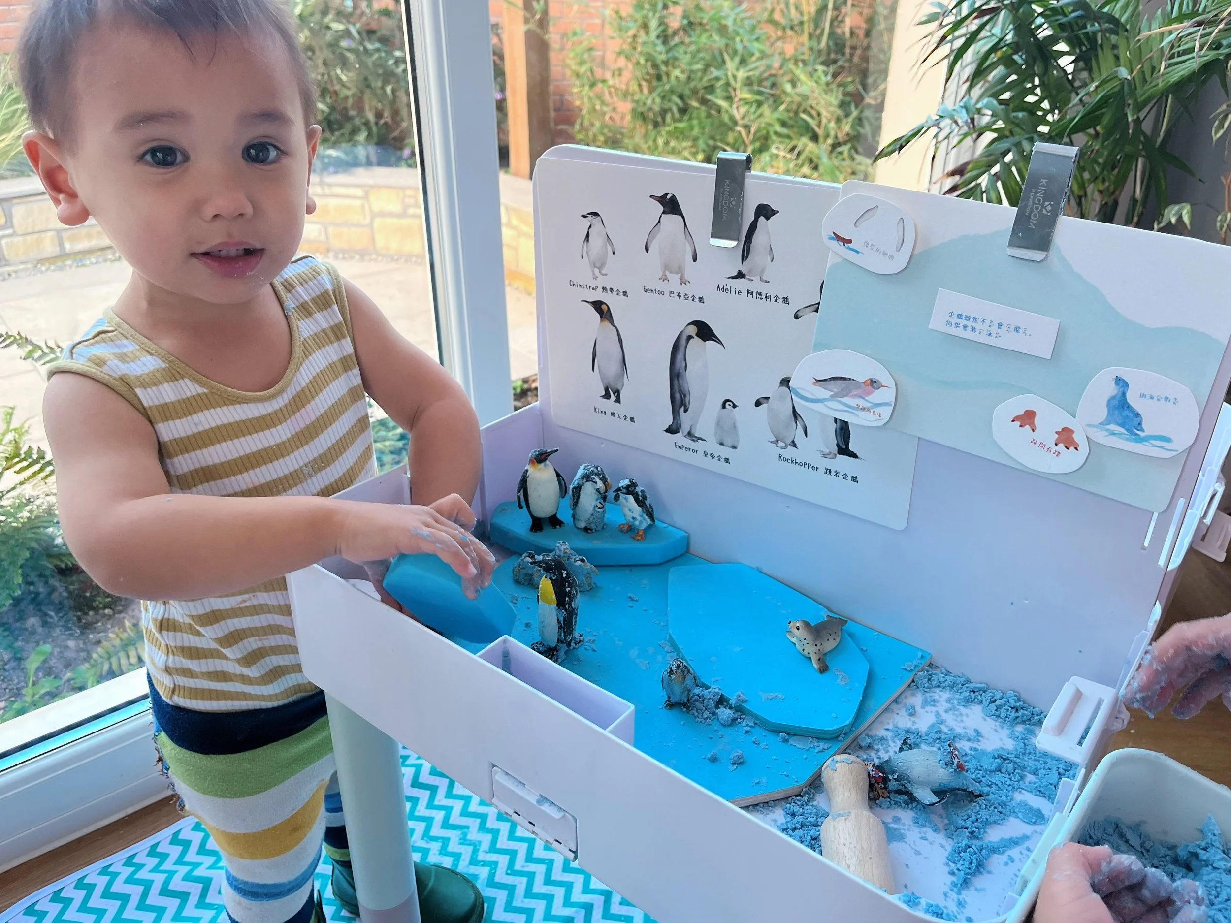 雲朵沙搭配小朋友最愛的企鵝組,也有好多繪本可以一起共學共玩。