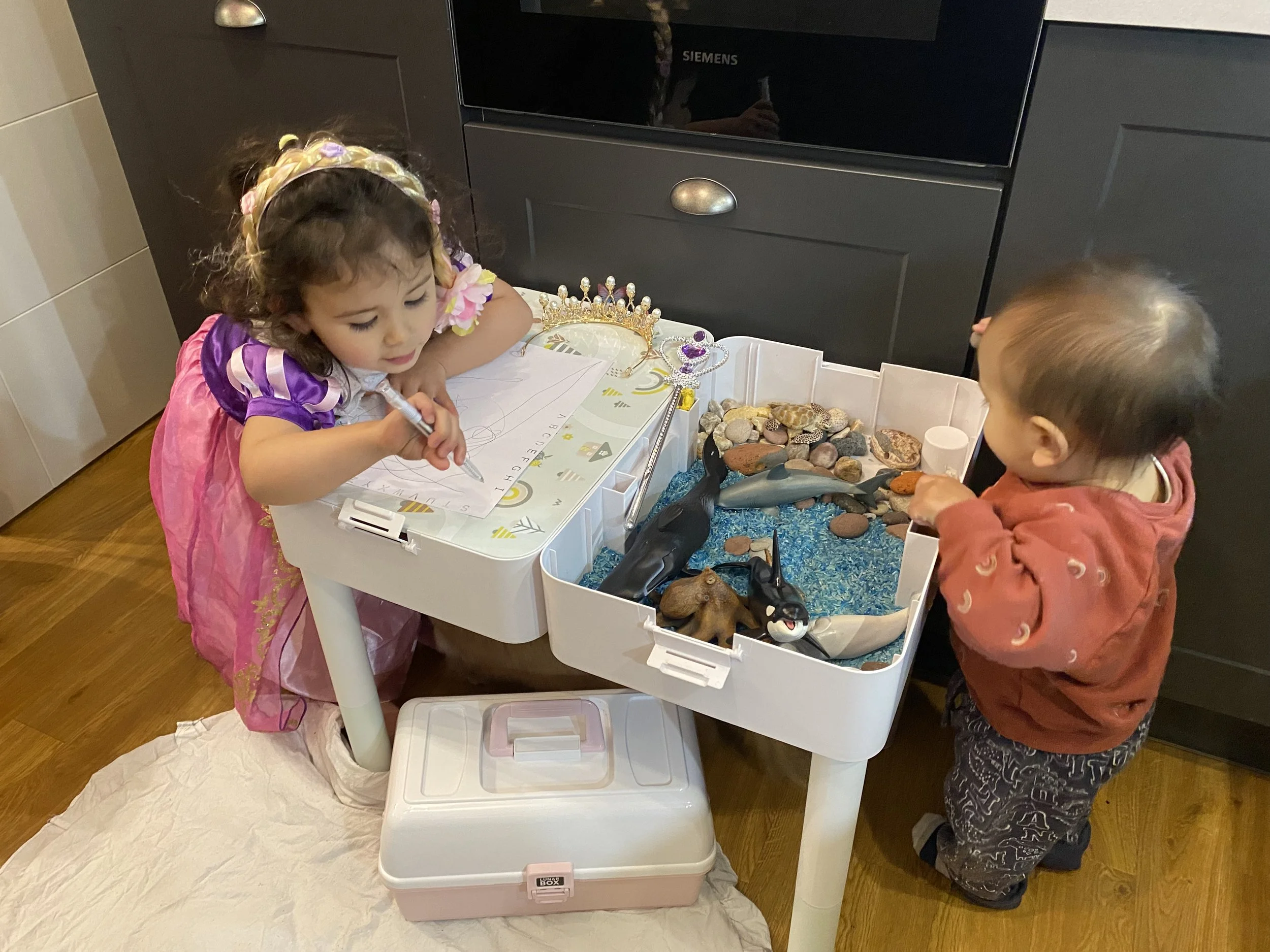 花了這麼多冤枉錢都在買小孩的桌子,一直在想怎麼就沒有集感官桌、樂高桌、收納桌、遊戲桌、與繪畫桌於一身,又可以玩水玩沙的育兒好物呢?