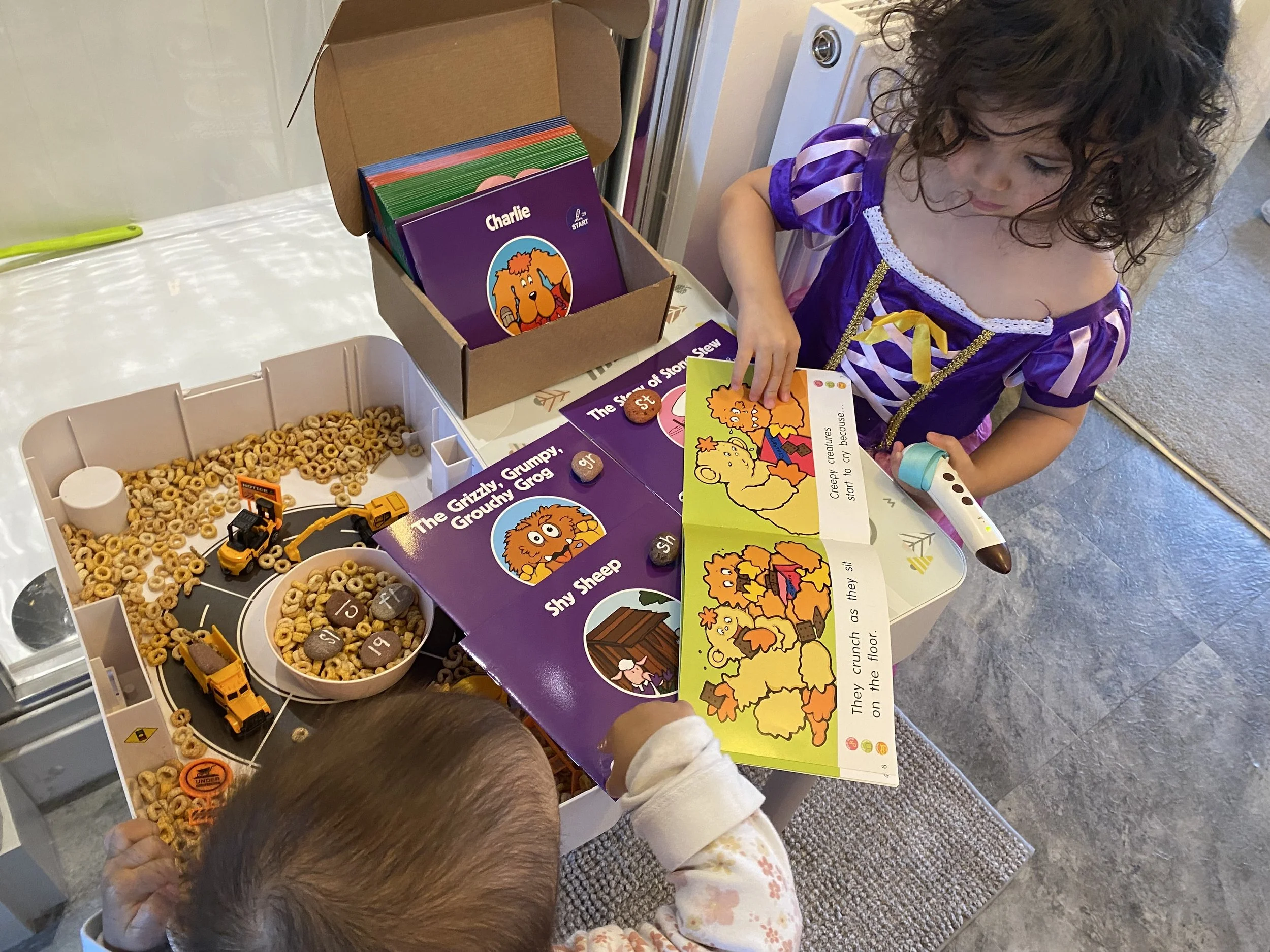 邊吃早餐穀片邊搭配點讀筆,學習自然發音。