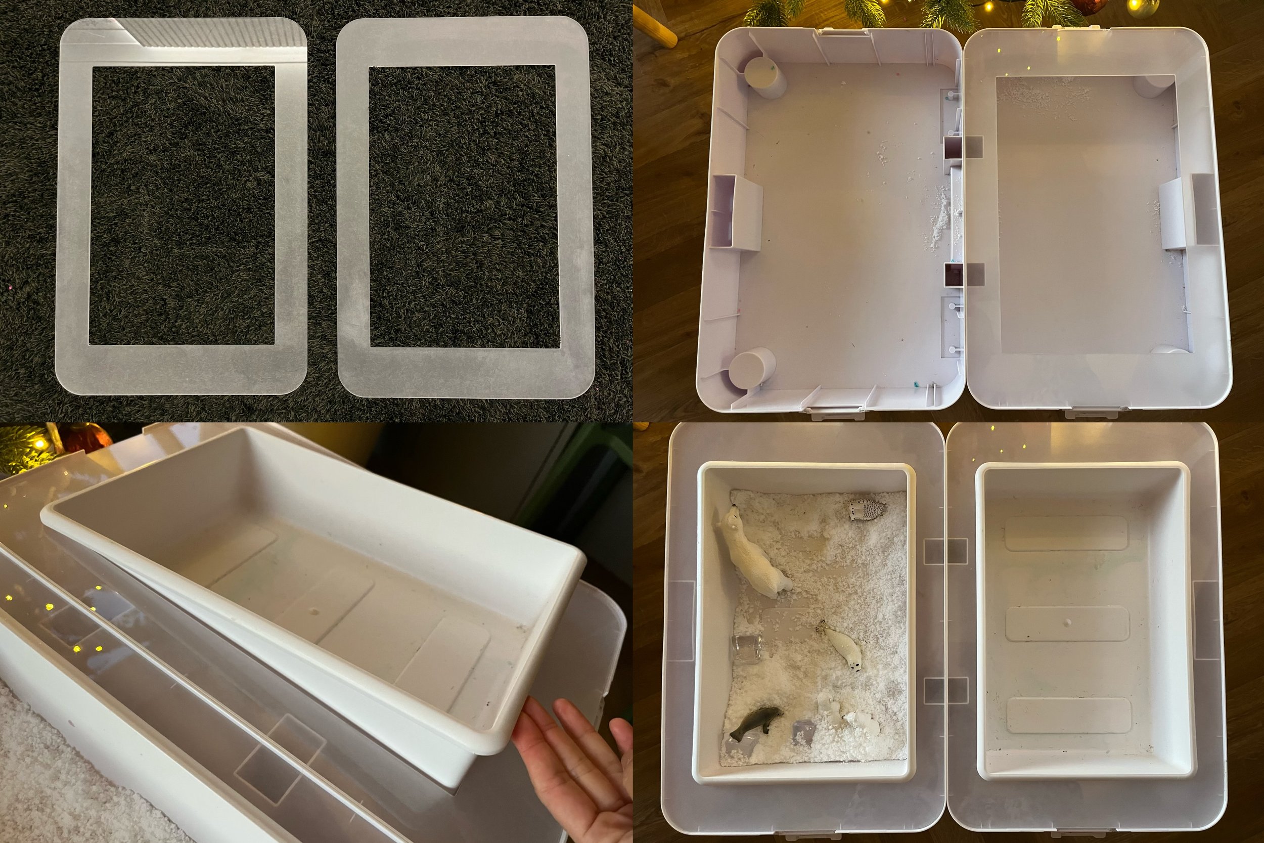 用舊紙箱剪下幾片,就可以變成分隔層,自製娃娃屋。