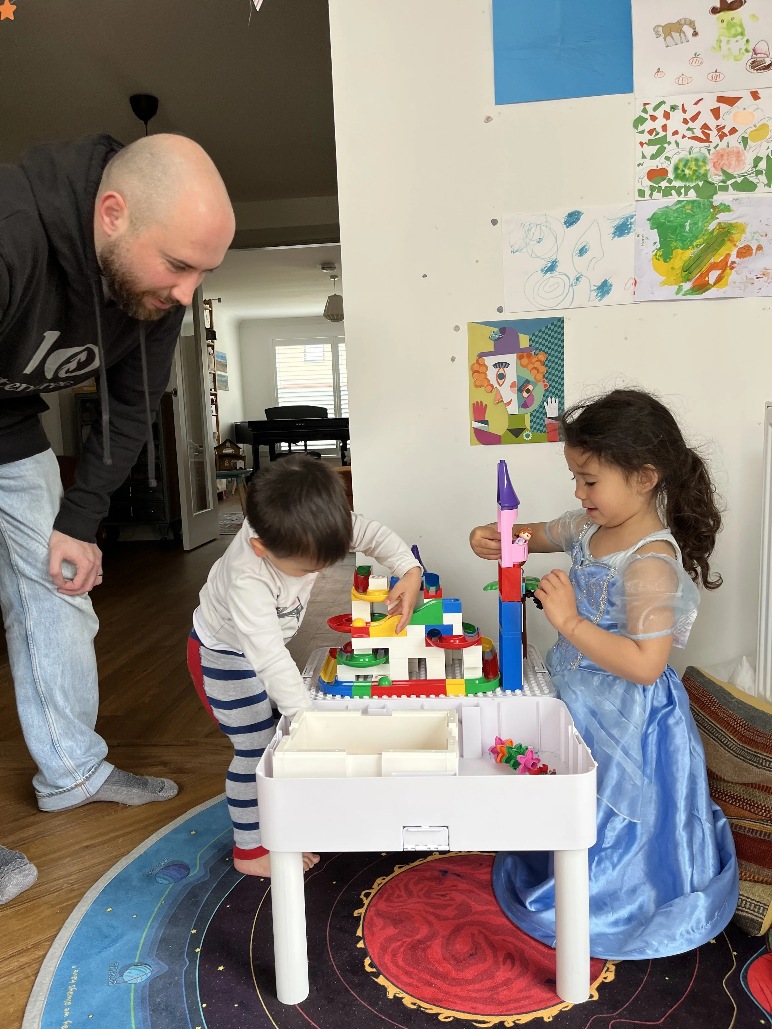 另一塊桌板是樂高小顆粒面,一張桌子就能滿足從小就喜愛建築玩具的雙寶。