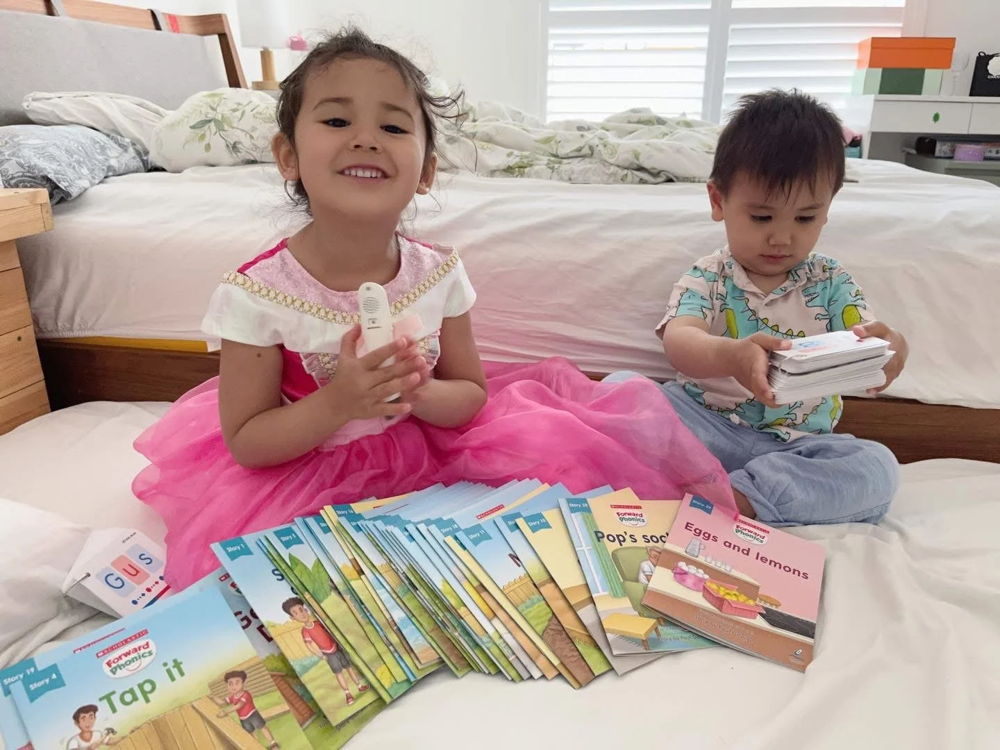 平時她能夠享受書本帶來的樂趣與奇幻歷險,更是常常幫媽媽唸故事書給弟弟妹妹聽,讓一打三的時光輕鬆許多❤️