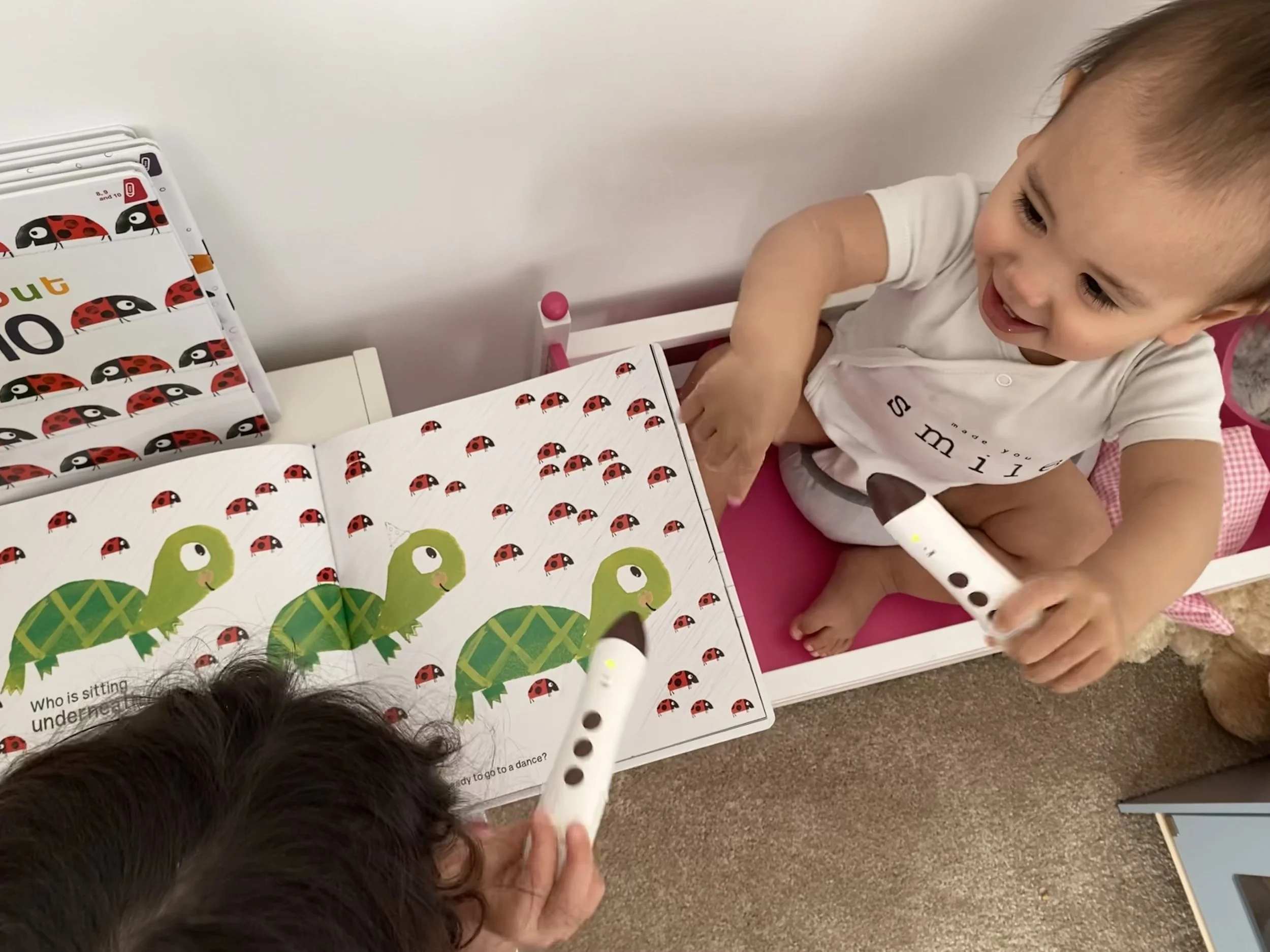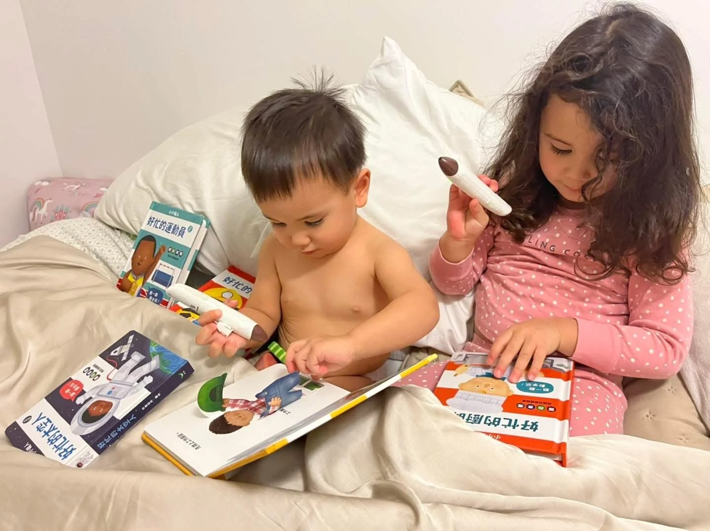 甚至它 #輕鬆將我們家中所有繪本都變成點讀有聲書,滿足了雙語家庭日常生活中,#多重語言輸入的需求。平時沒空錄音轉檔的忙碌家長,也可以使用現成的優質點讀教材,買書回來直接就能點來聽。