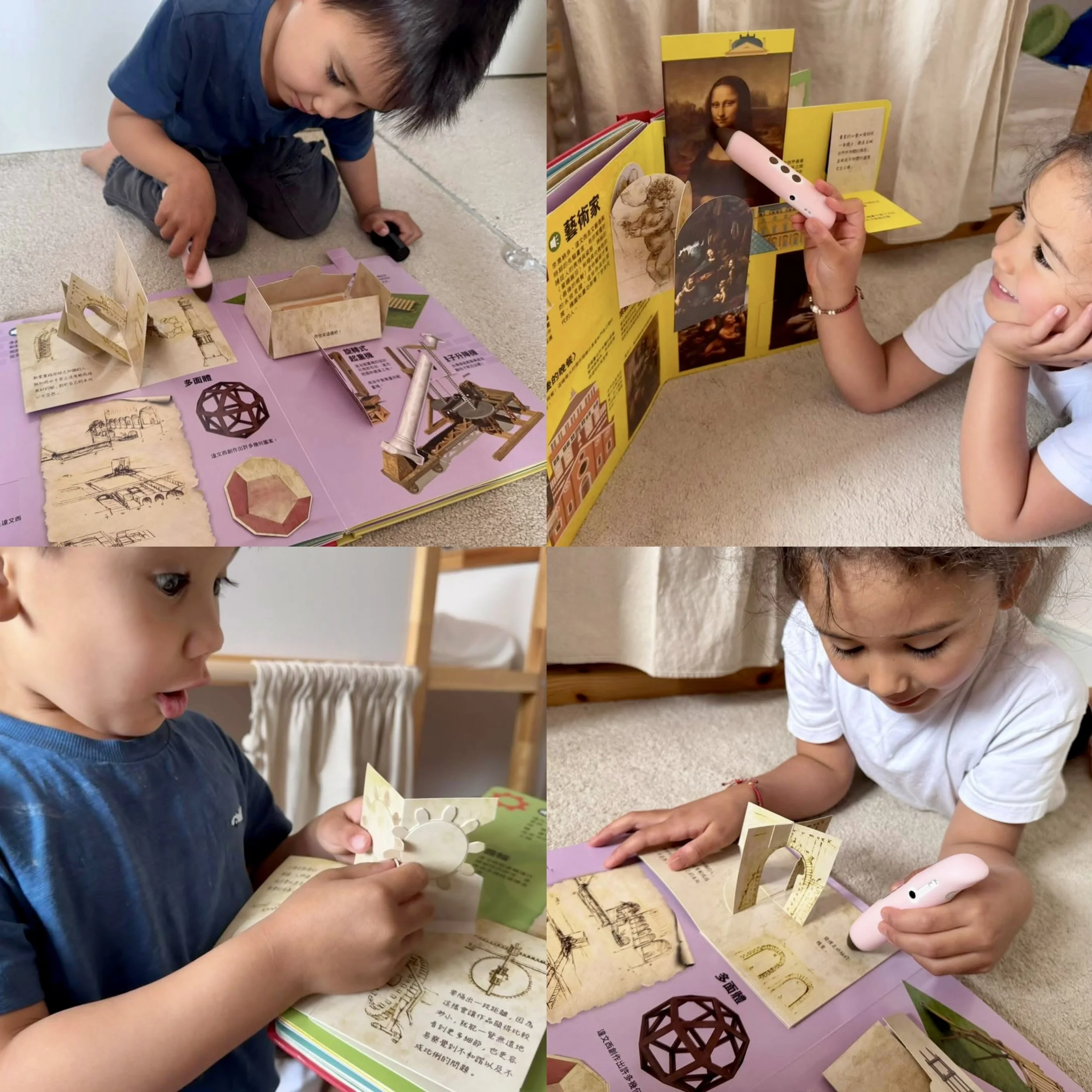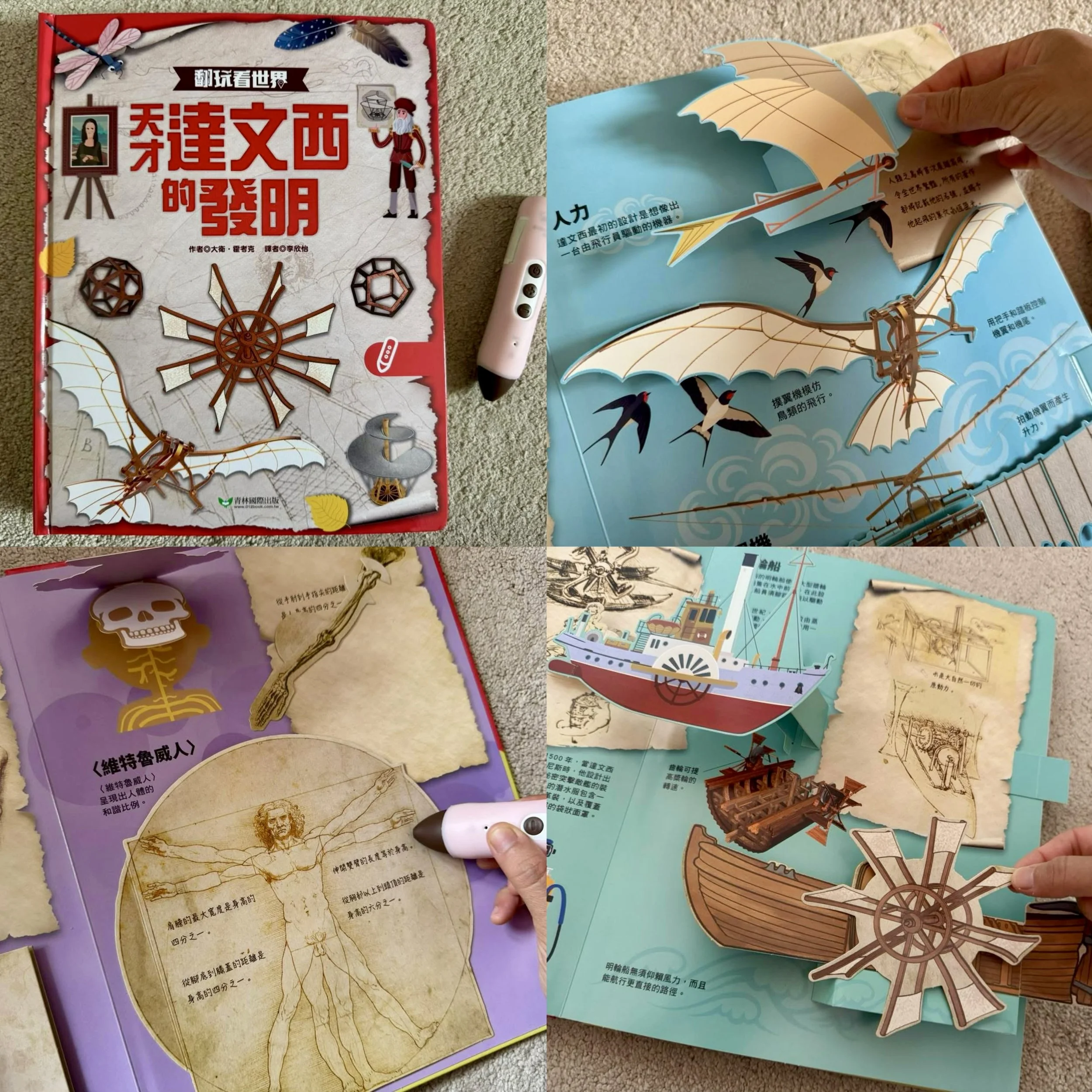 《翻玩看世界:天才達文西的發明》點讀知識立體書 中,透過翻翻、推拉、點讀的互動,帶孩子走進達文西的工作坊,親手體驗想像與發明的樂趣。