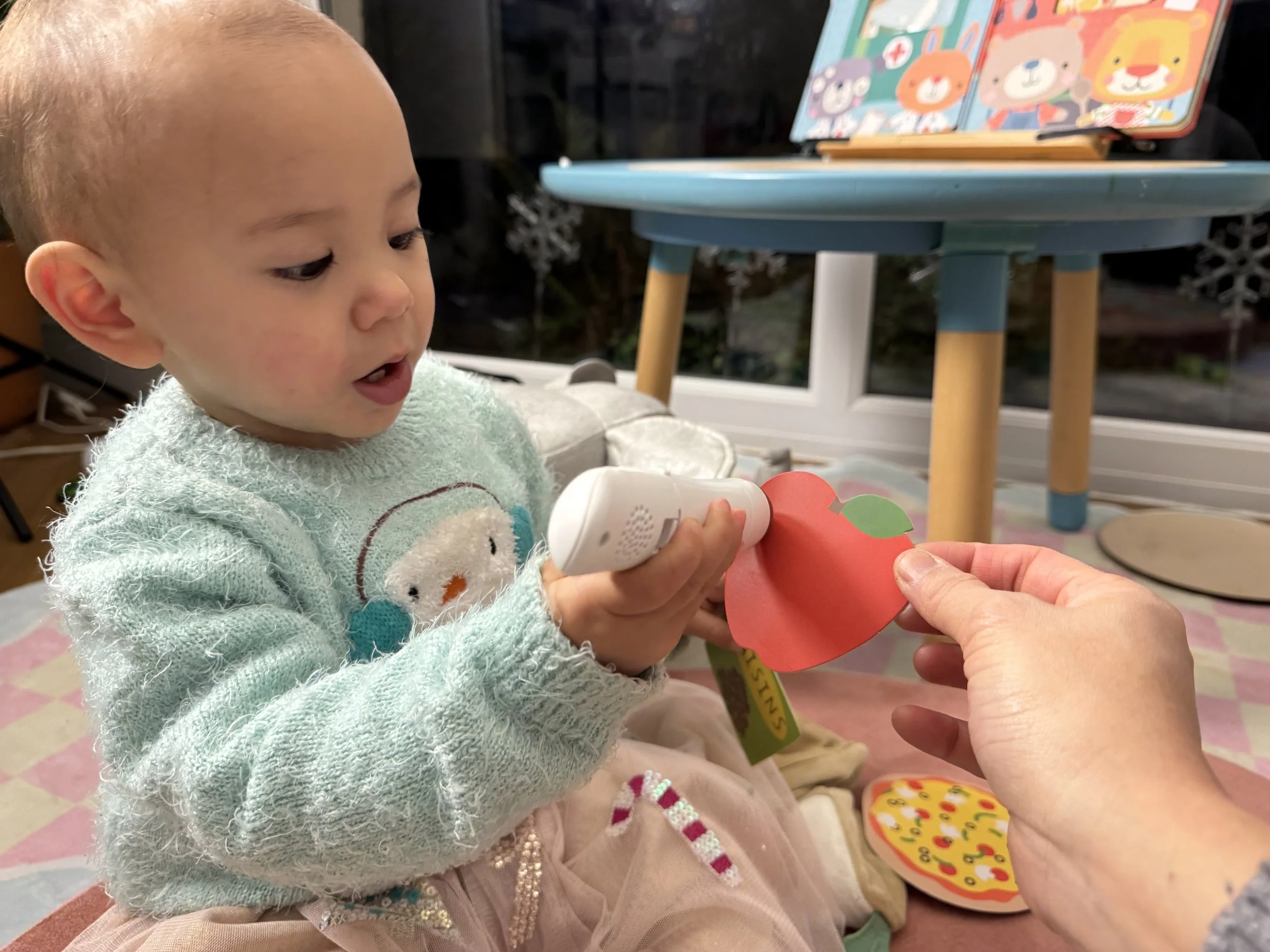 即使是土生土長歪果仁小孩,面對專業英語名詞也是要聽上十遍才有可能對單字熟悉。我記得兒子上次點「耳溫槍」點到跳針,十幾遍了還無法跟著發音出聲(單字太長了:Ear Pharometer with a cap)
