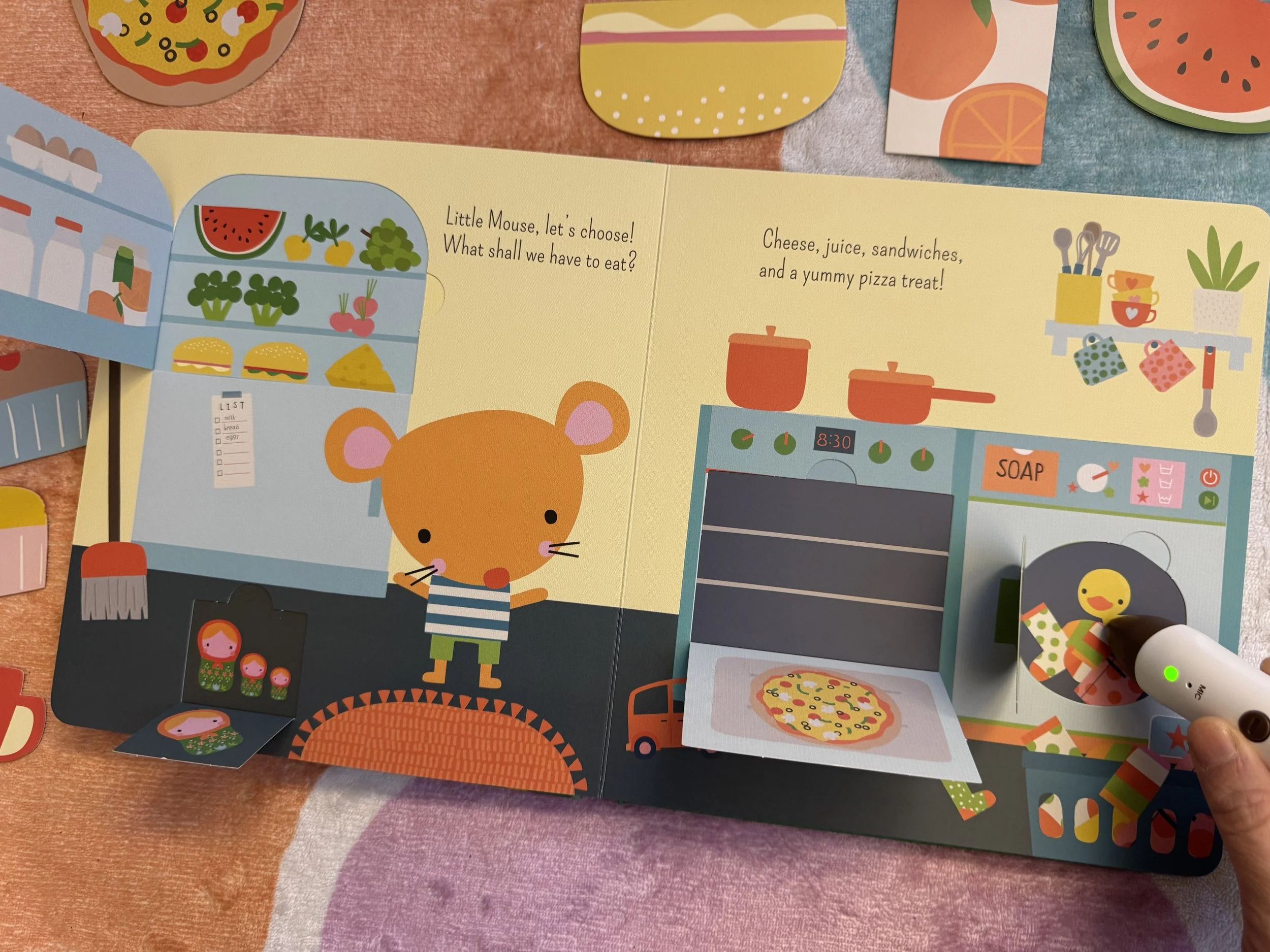 我個人很愛這個食譜小翻頁,用點讀筆點選上面的菜色,就會播放不同的菜餚發音唷!有好多可以選。