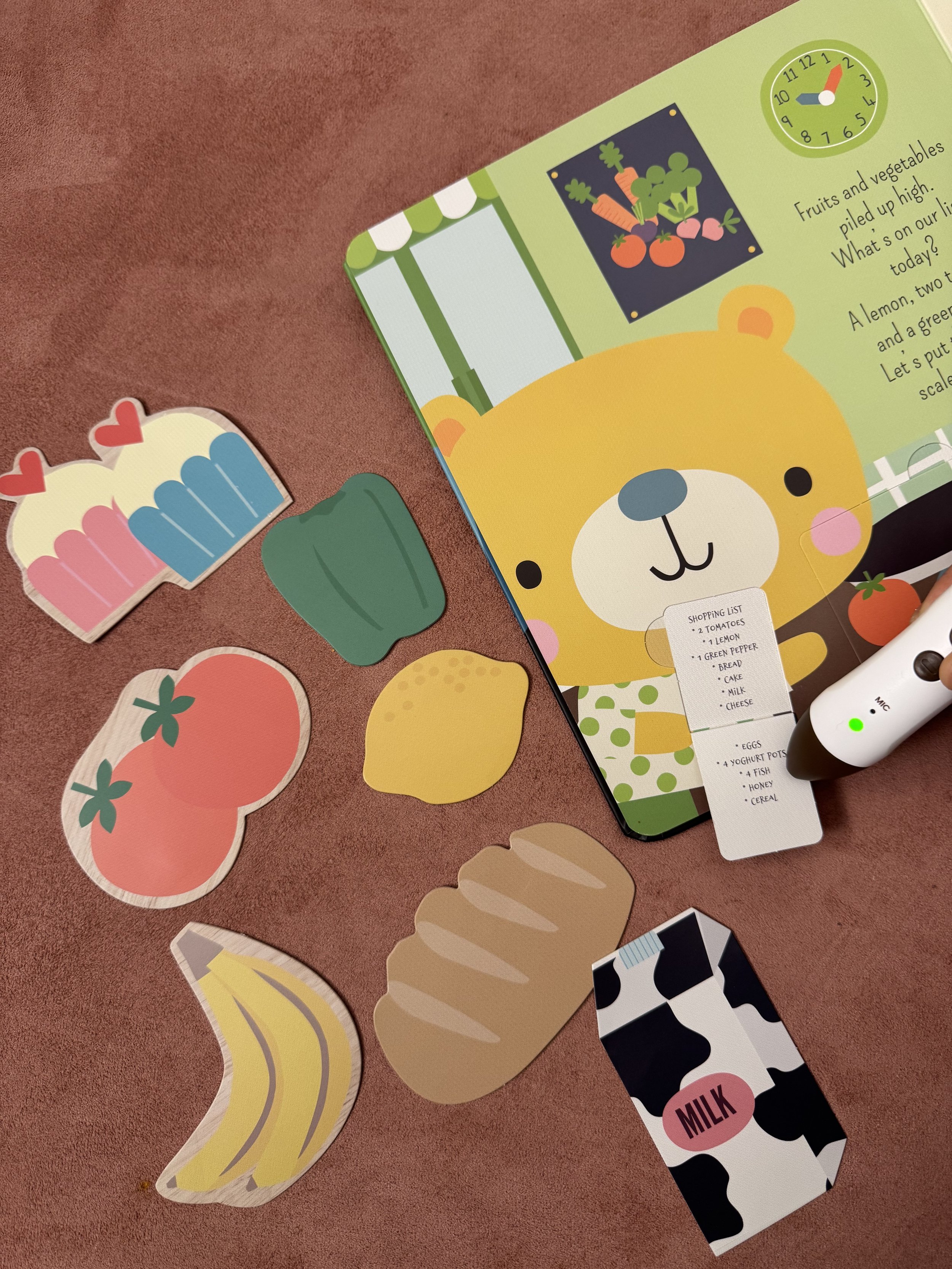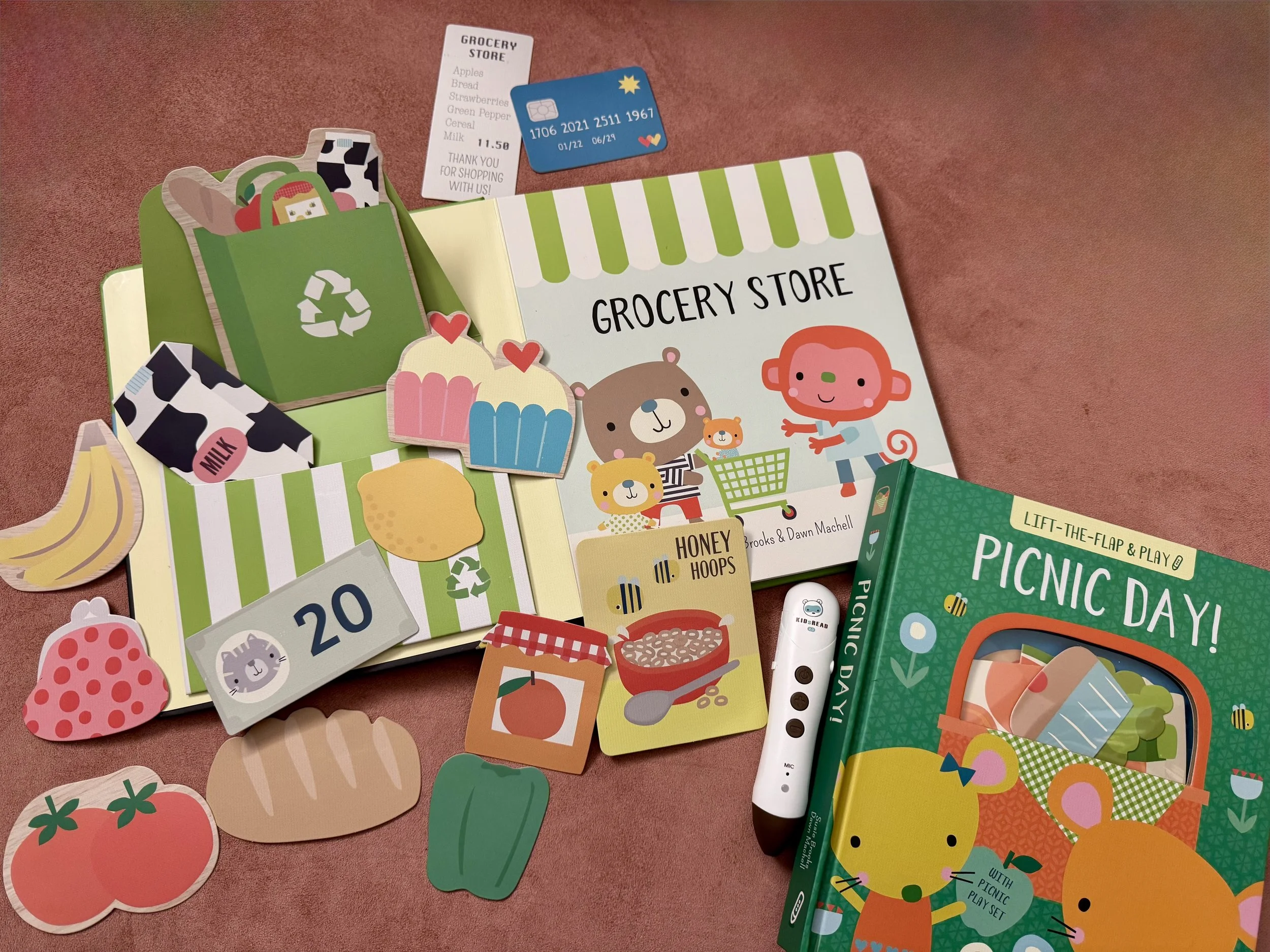 新推出的《Picnic Day》(野餐日)以及《Grocery Store》(超級市場購物),都是非常貼近孩子們日常的主題。透過翻翻頁,聆聽故事,搭配超級可愛的教具玩情境家家酒,英文不知不覺就說出口了。