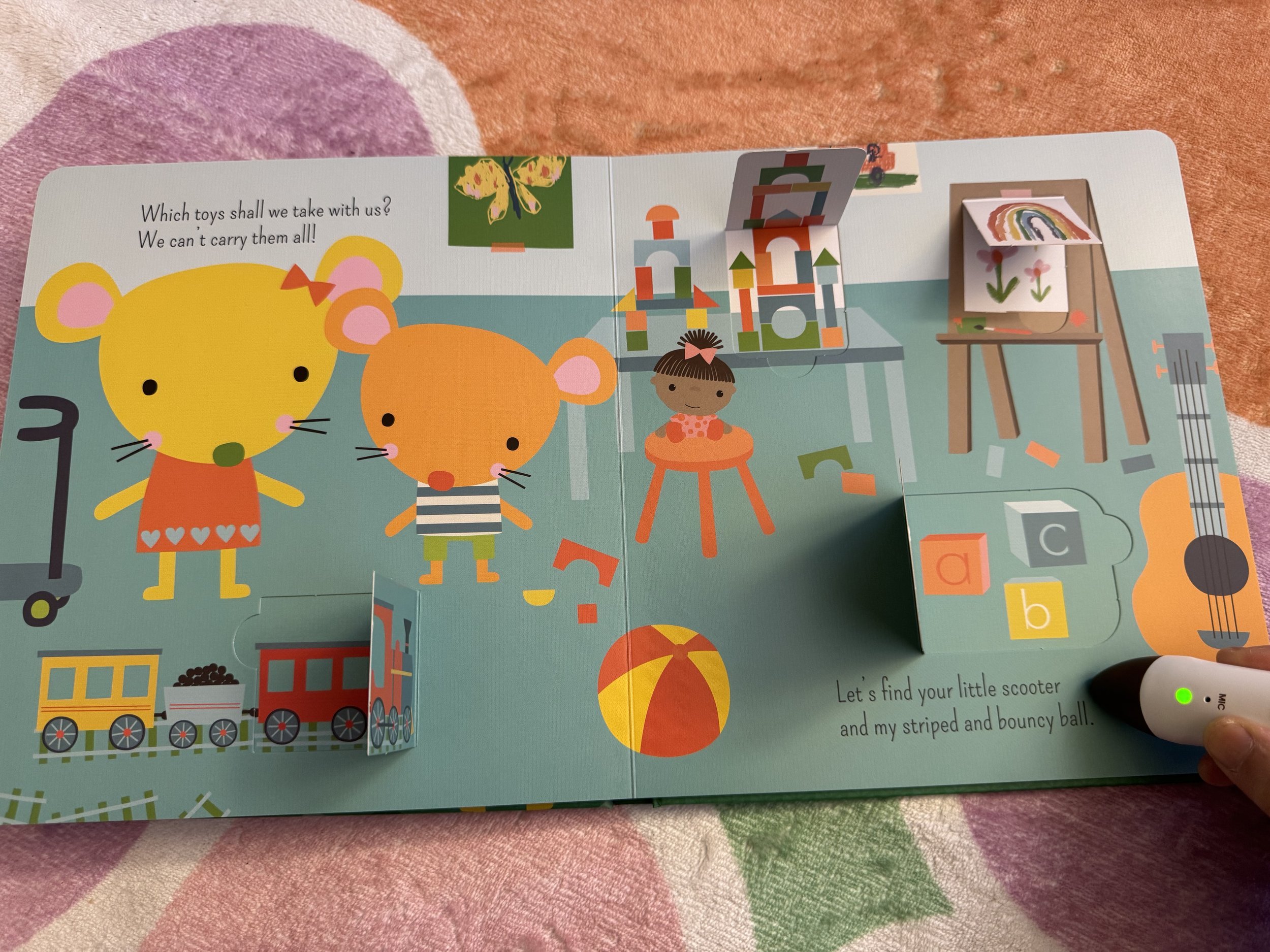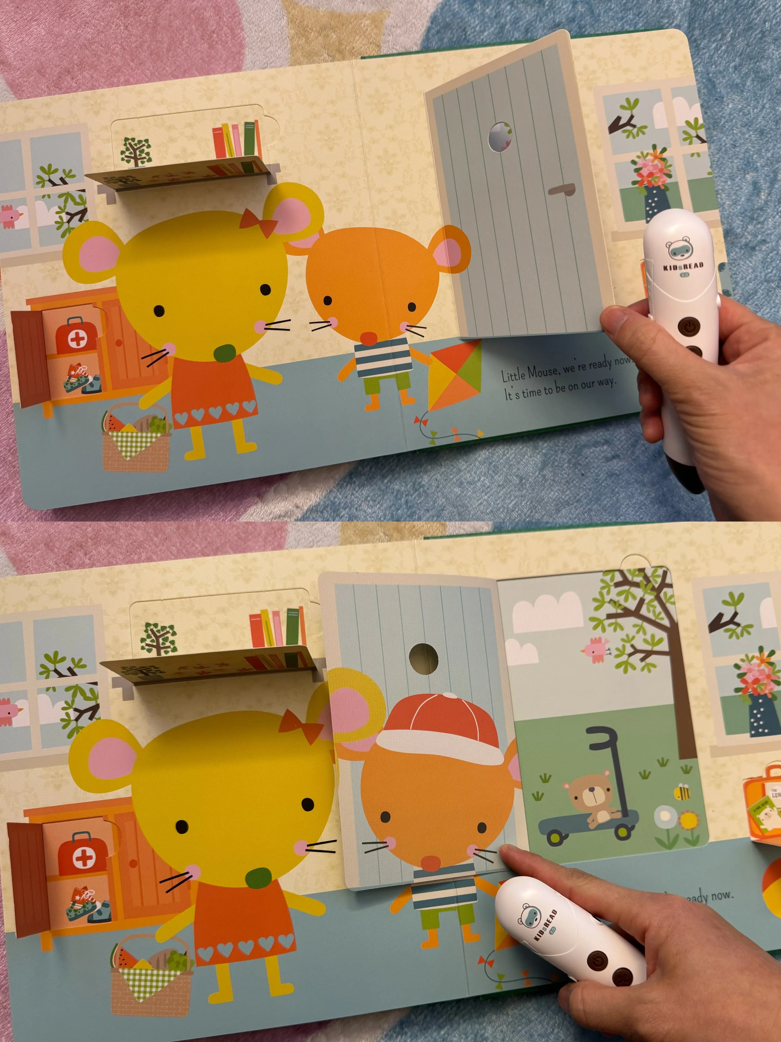 打開小老鼠的家門,可以看到裡面有滑板車和背包;翻開外面的盆栽,裡面躲著可愛的小瓢蟲。