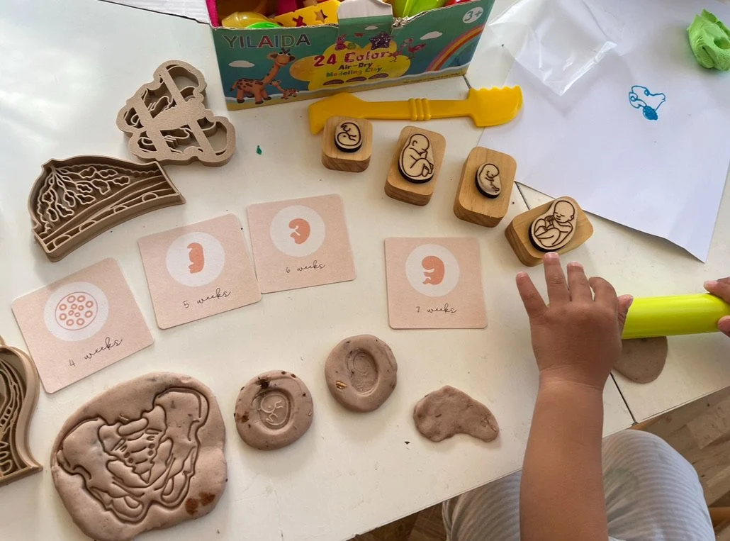 透過小手觸摸、用黏土模具製作這些器官,搭配不同時期的胎兒印章,讓孩子們對於正在懷孕中的媽咪,有了更多了解、多了更多共情與體諒,會想心疼媽咪、會努力讓我舒適些。