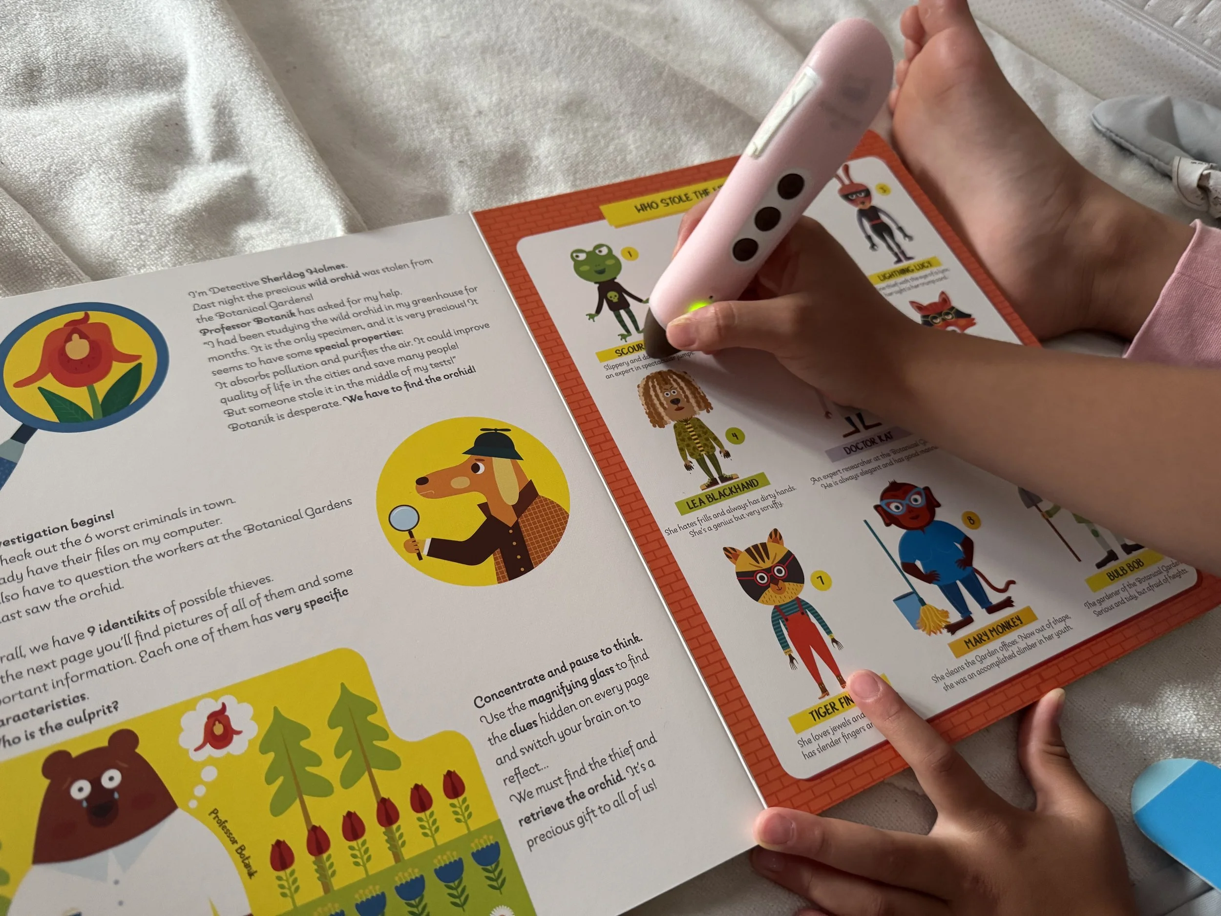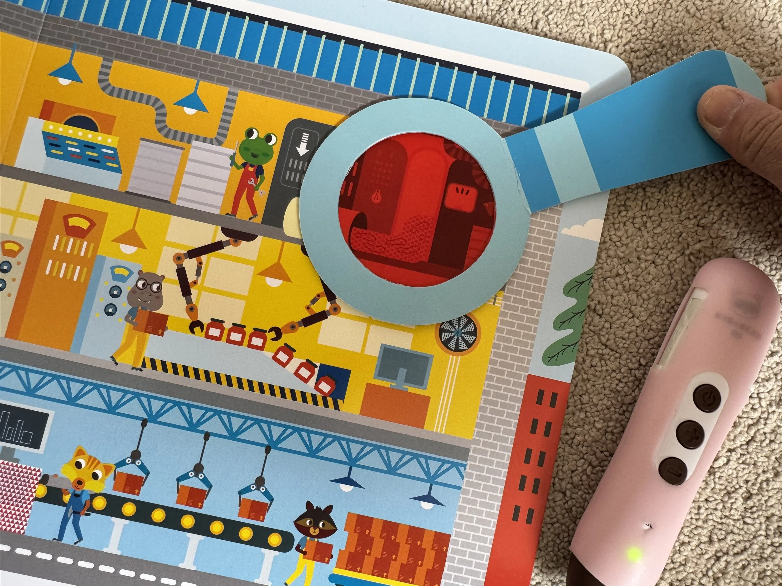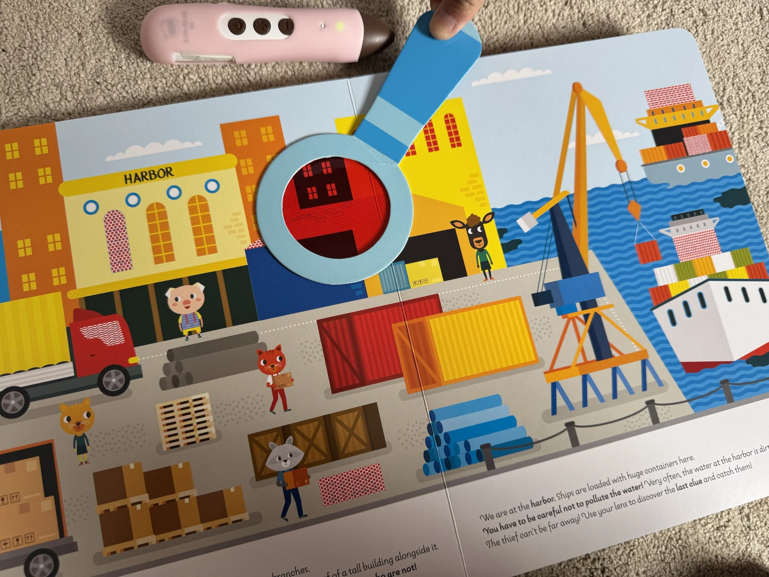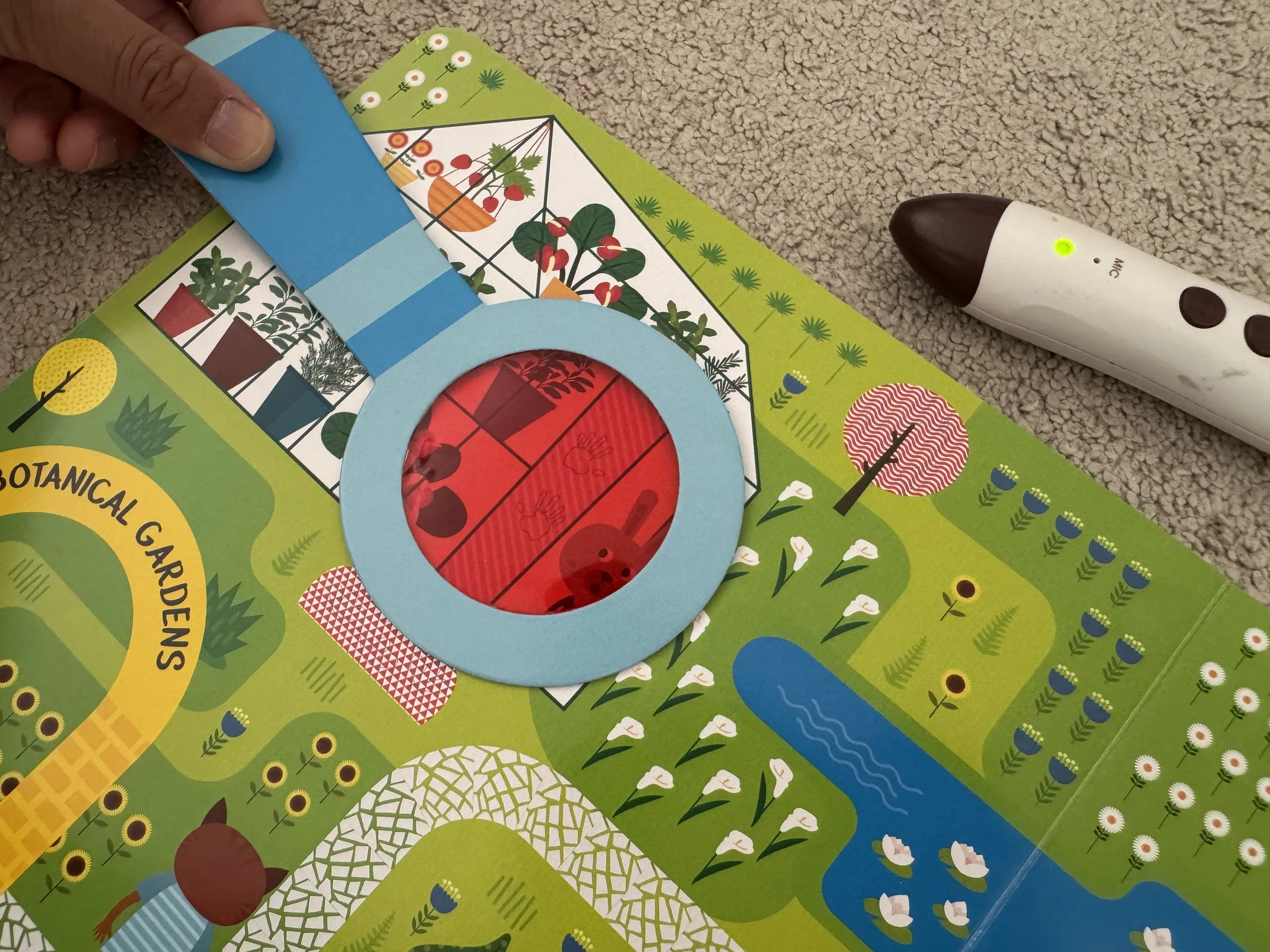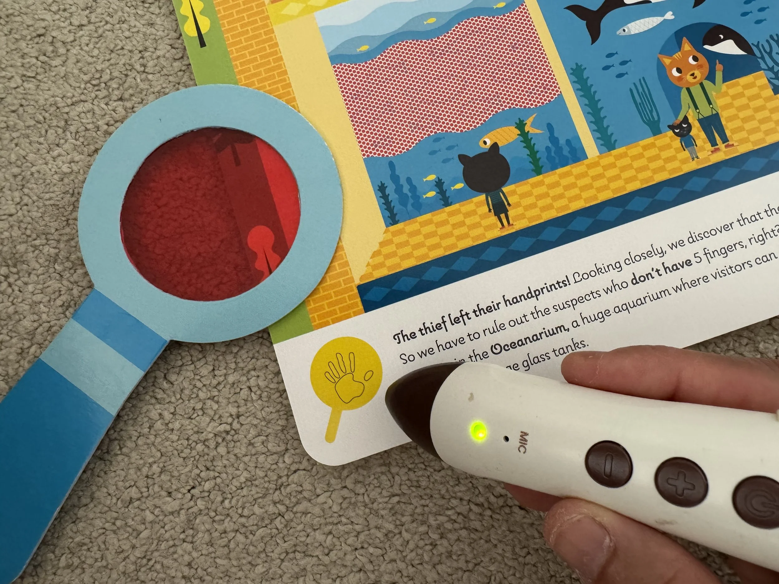 用點讀筆點放大鏡會說:「Use me to solve the case.」(用我來破案)