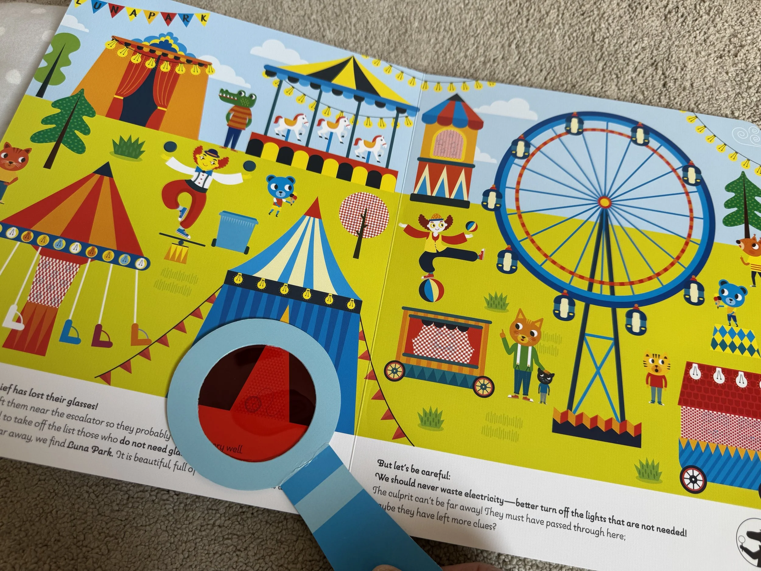 雙寶最愛拿起這隻放大鏡,到處尋找線索,享受著一場充滿智慧的閱讀冒險。